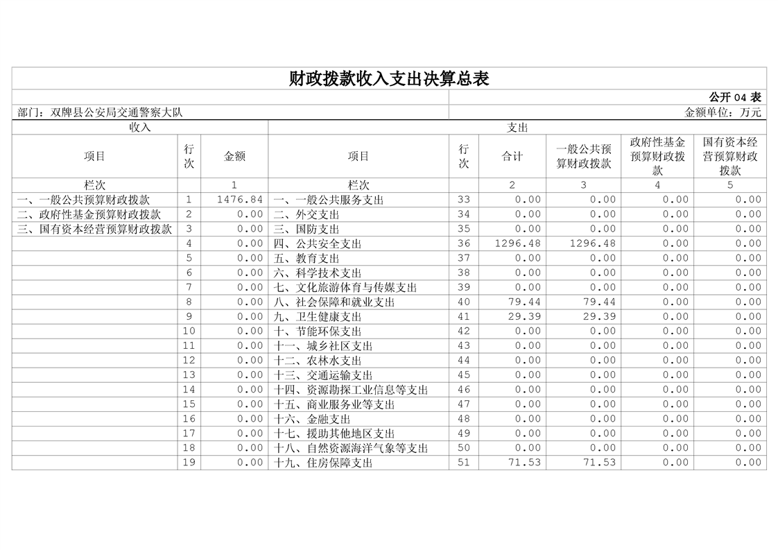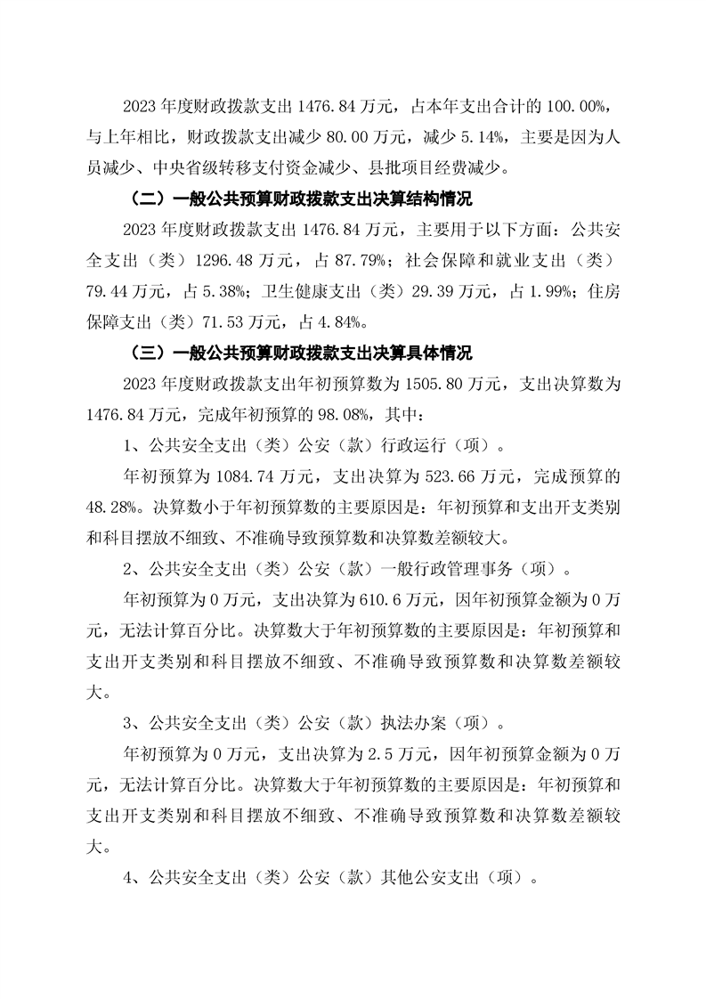 双牌县公安局交通警察大队2023年部门决算公开说明