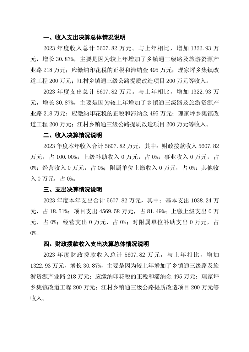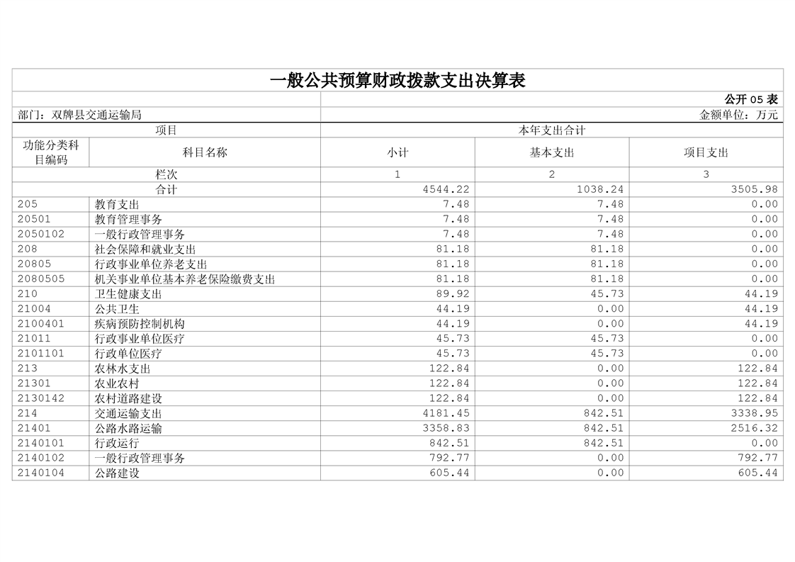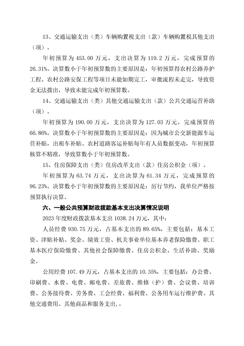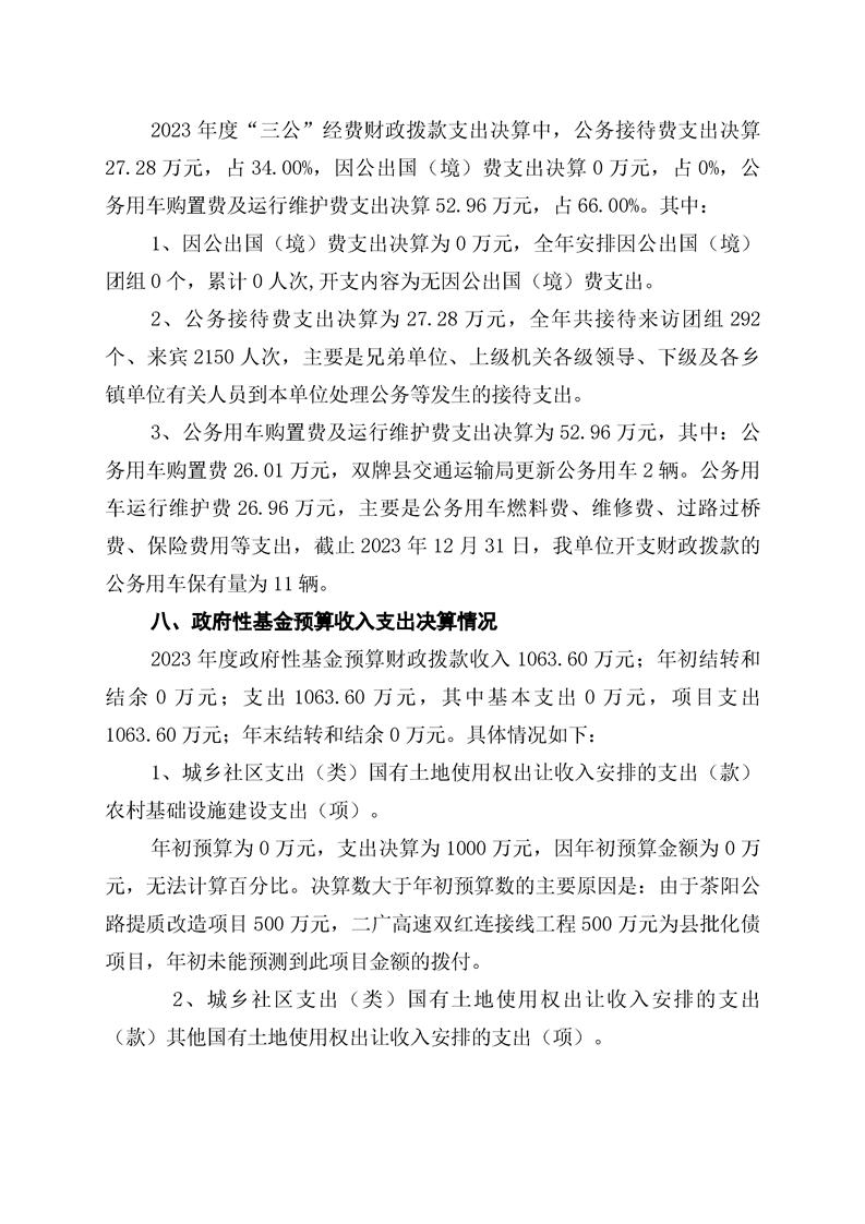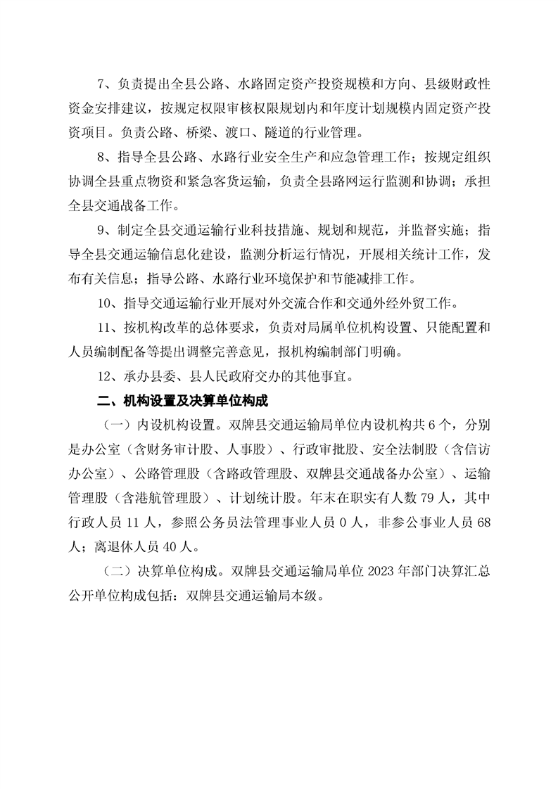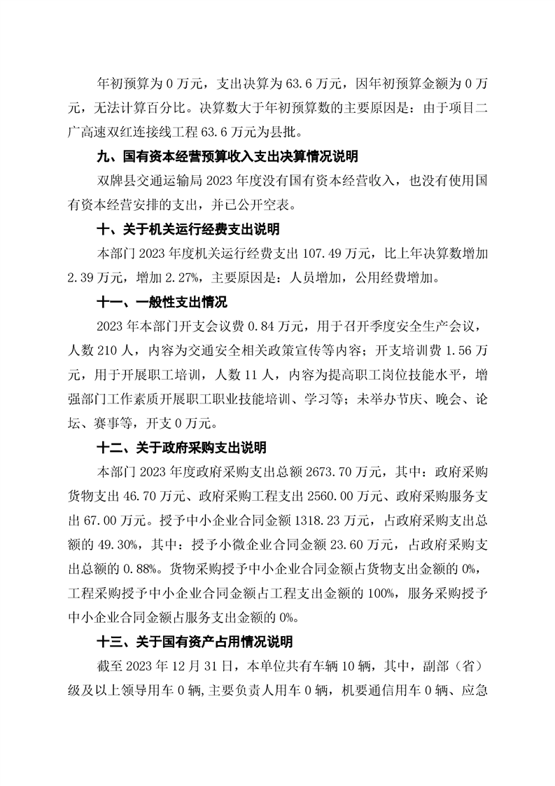 双牌县交通运输局2023年部门决算公开说明