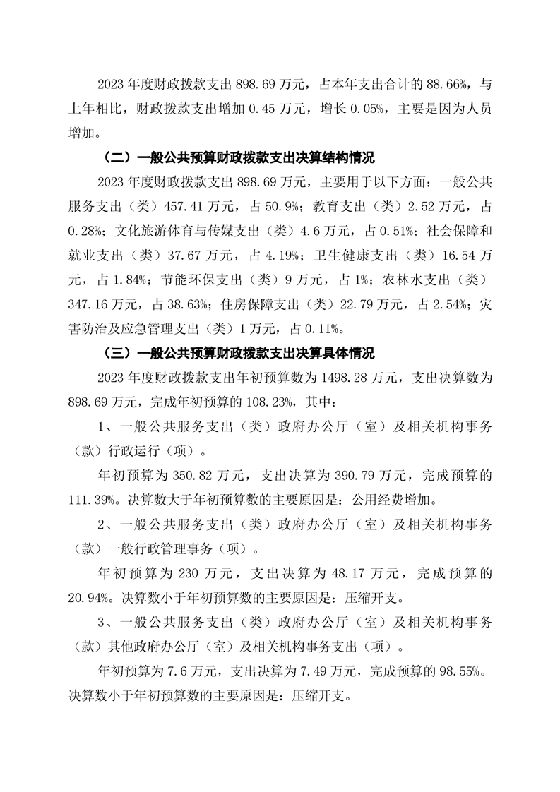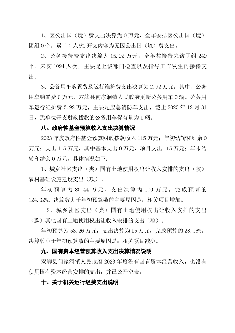 双牌县何家洞镇人民政府2023年部门决算公开说明