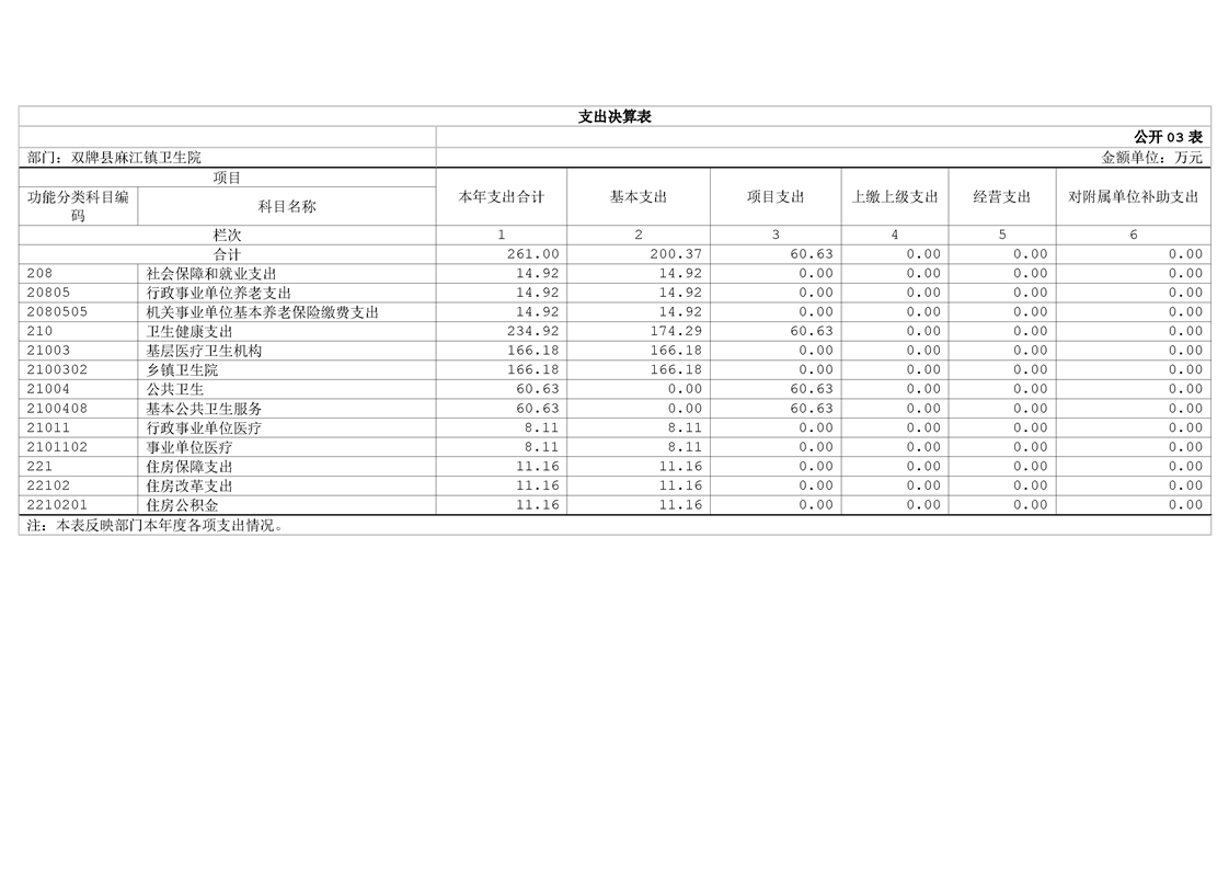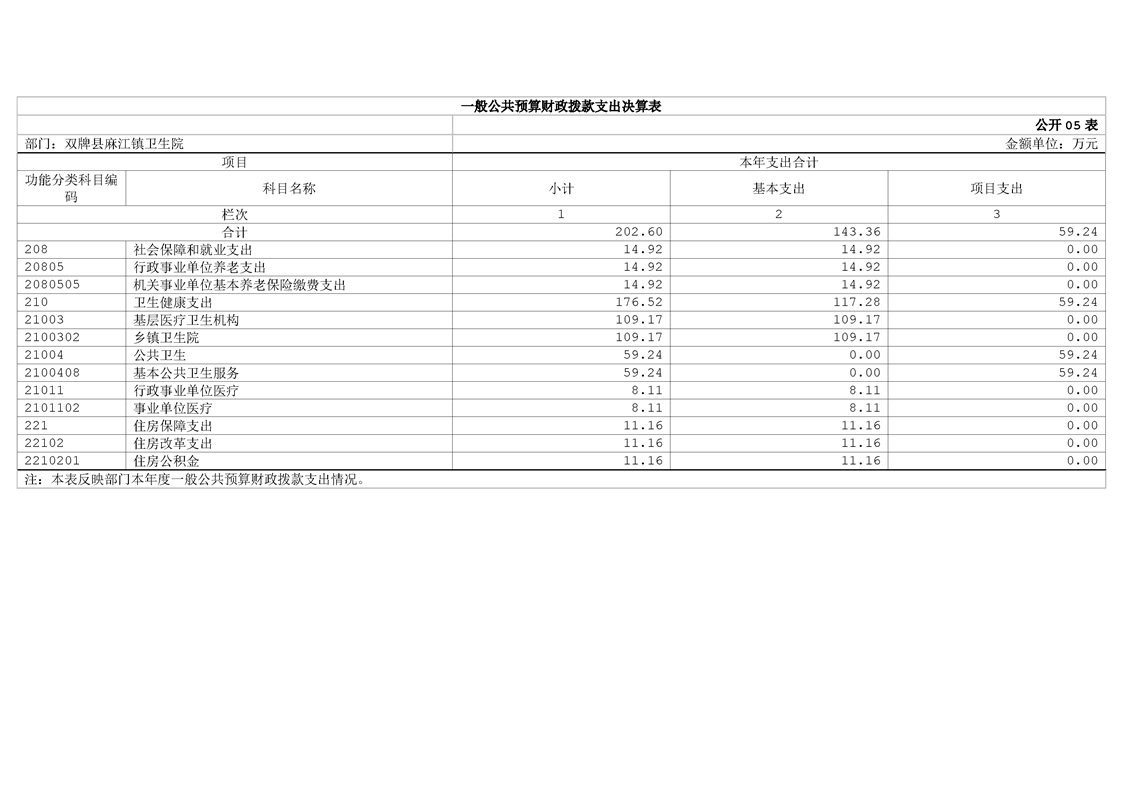 2024年度双牌县麻江镇卫生院部门整体支出绩效自评报告