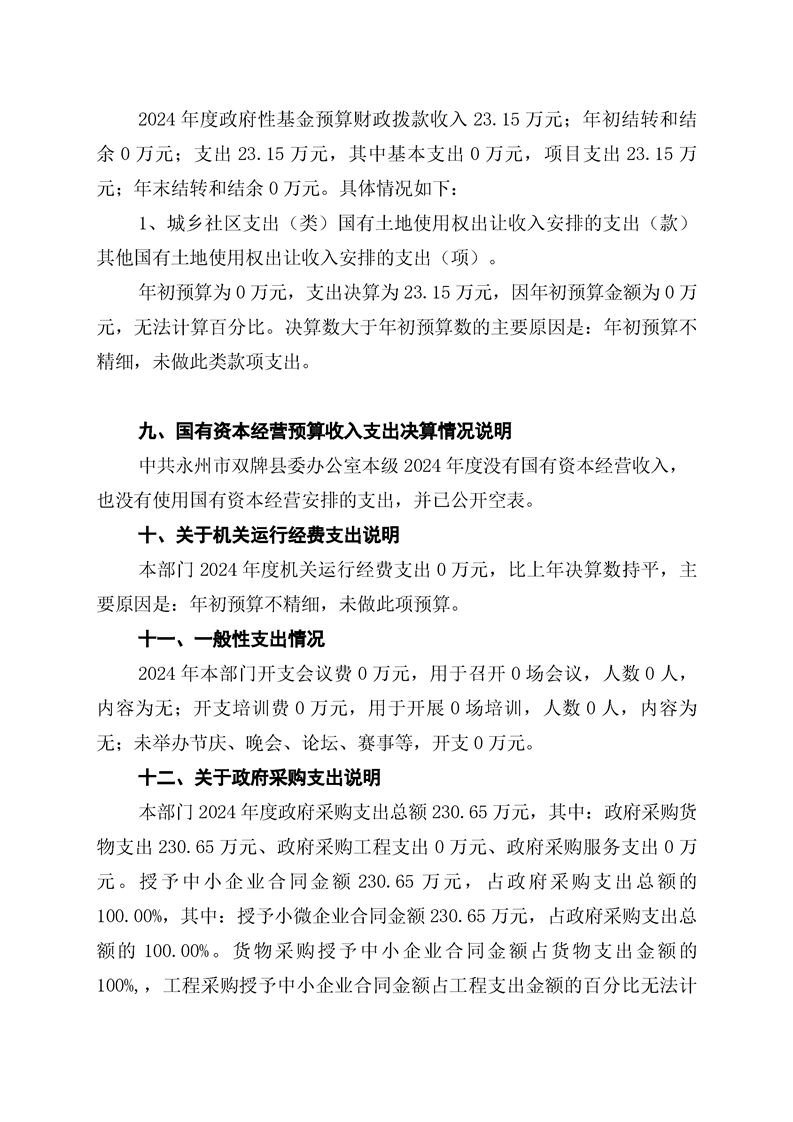 中共永州市双牌县委办公室本级2024年部门决算公开说明