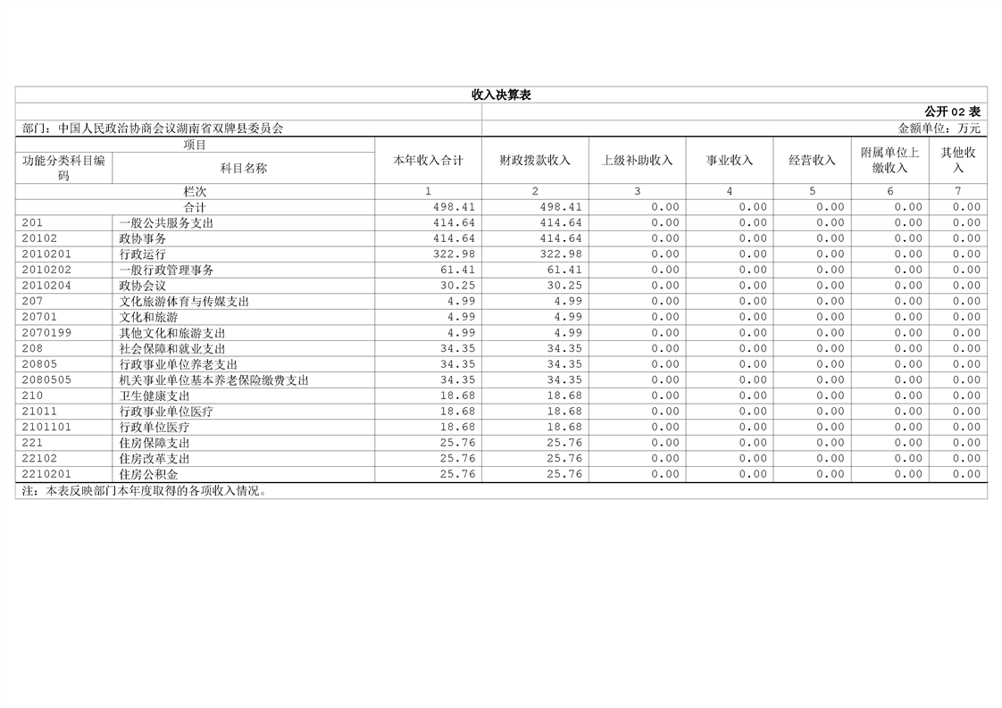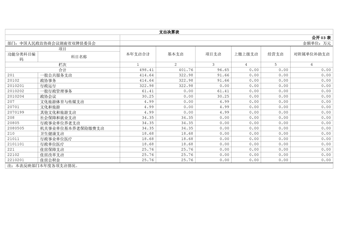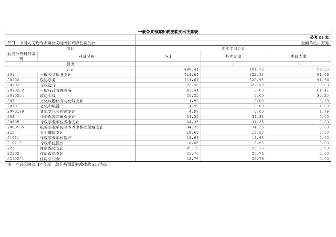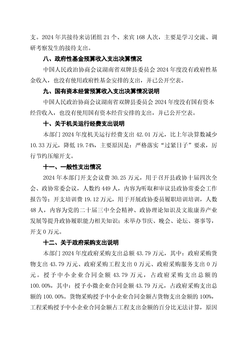 中国人民政治协商会议湖南省双牌县委员会2024年部门决算公开说明