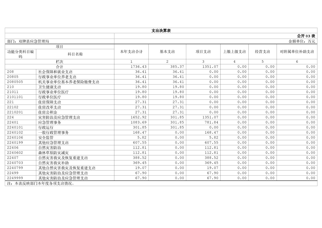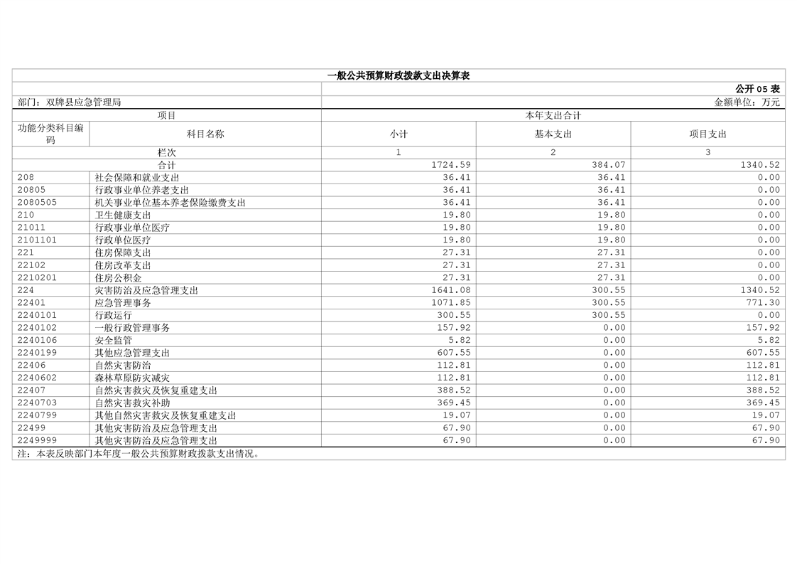 2024年度双牌县应急管理局部门整体支出绩效自评报告