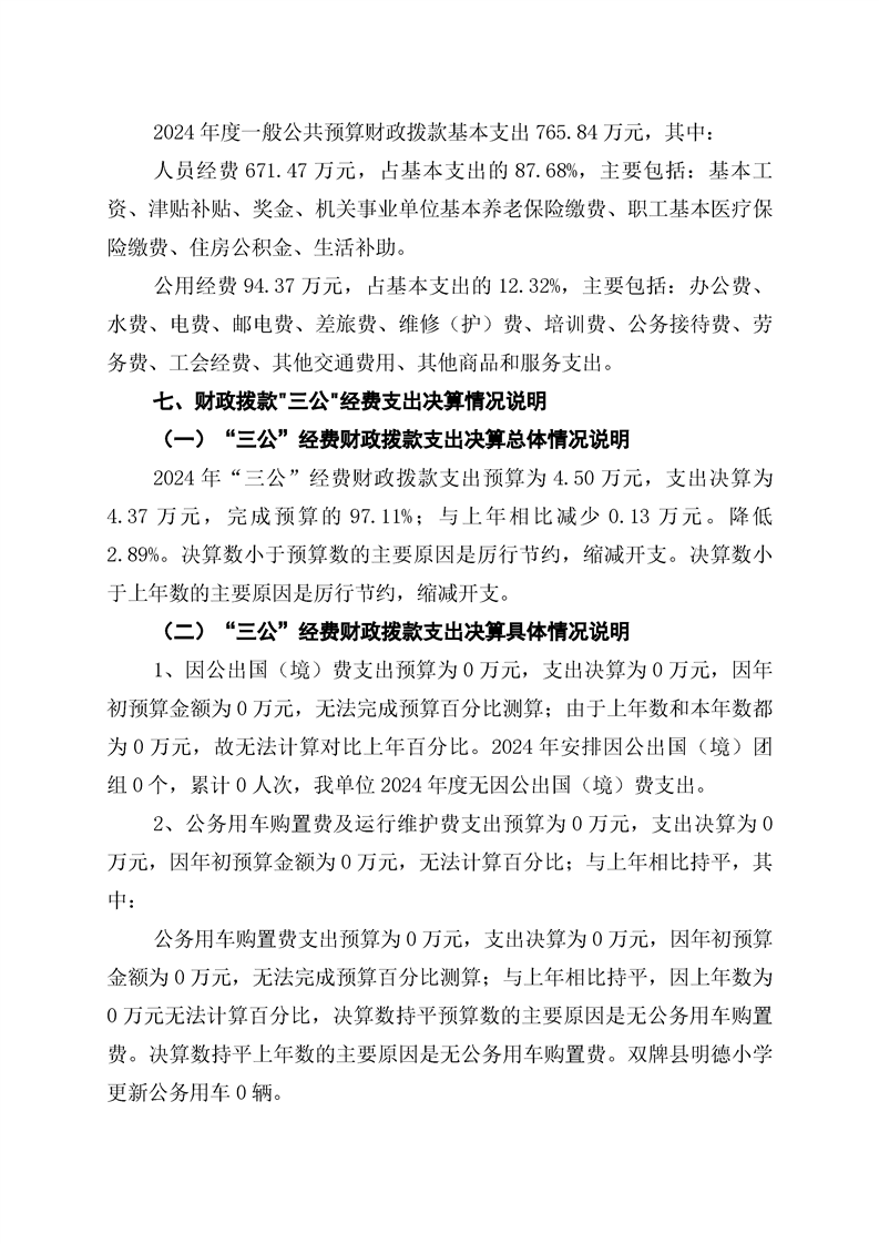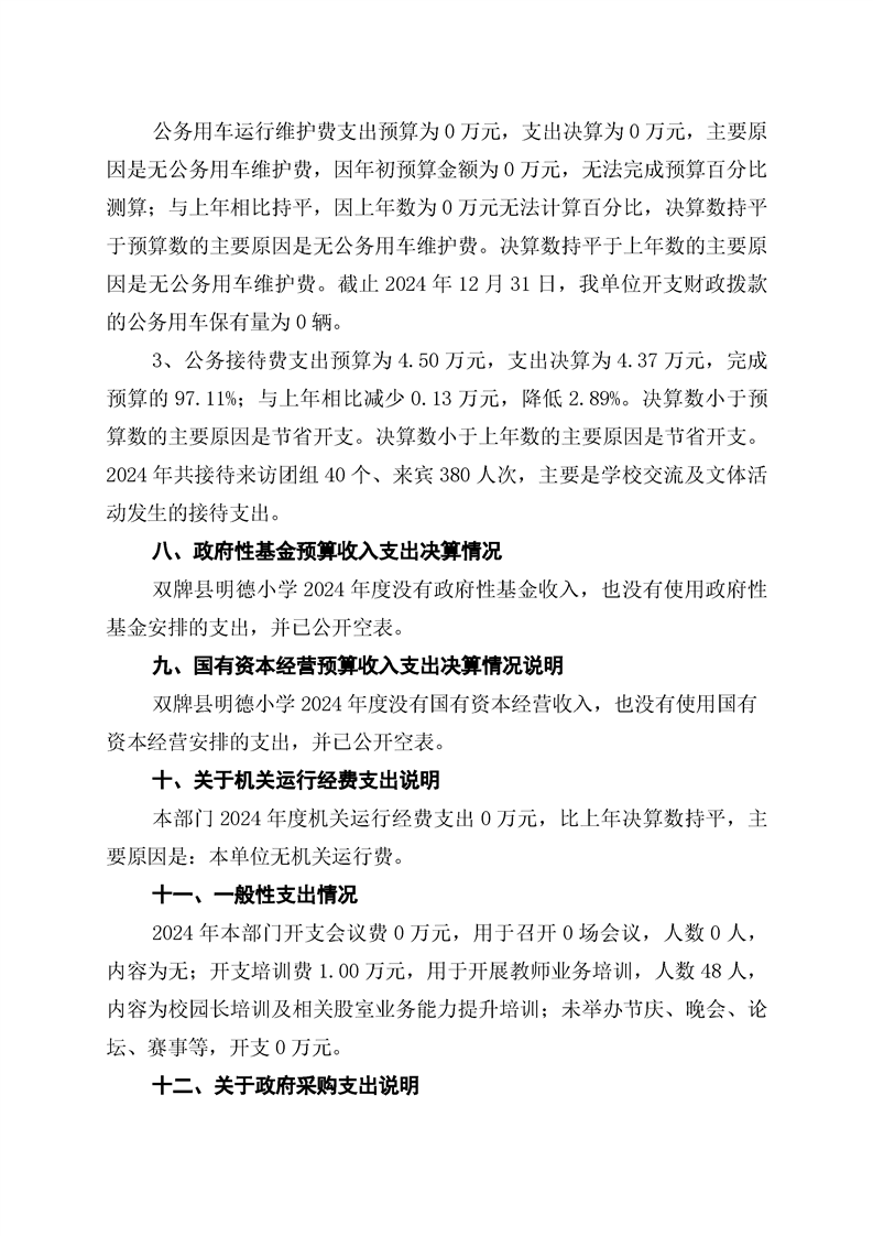 2024年度双牌县明德小学部门整体支出绩效自评报告