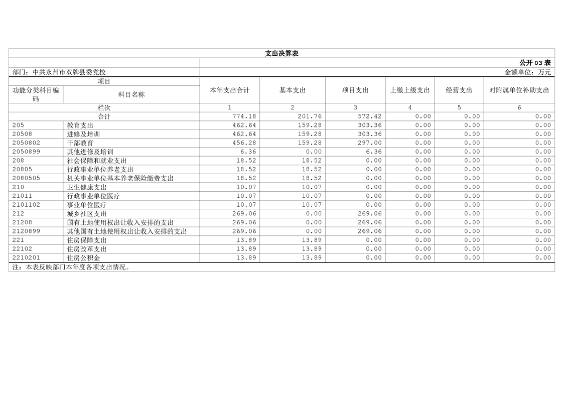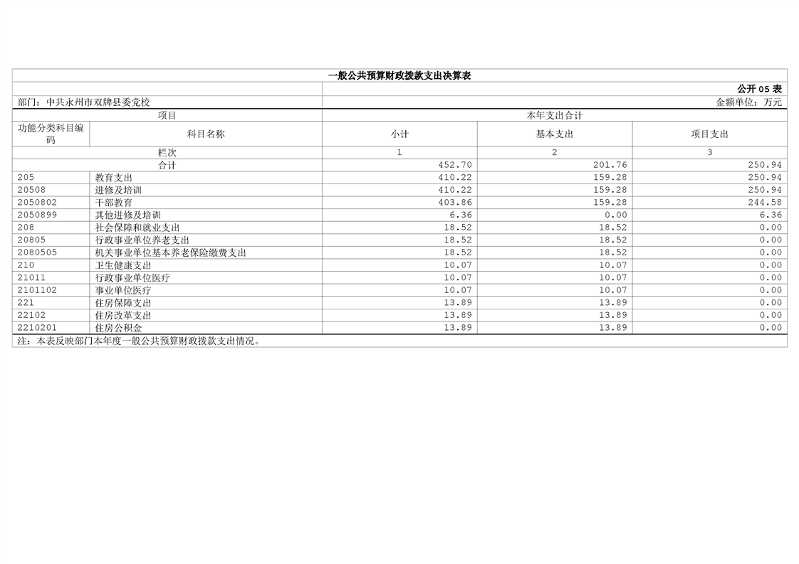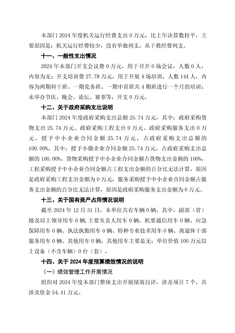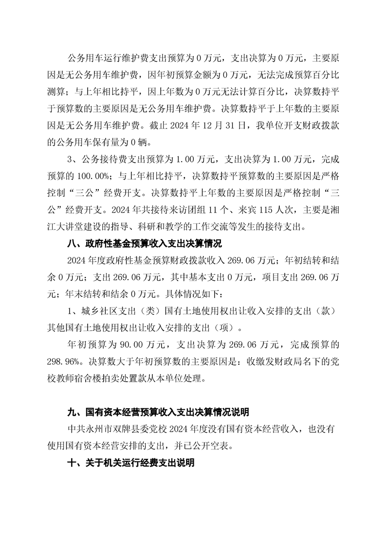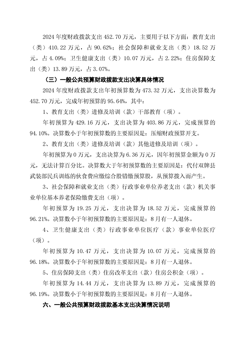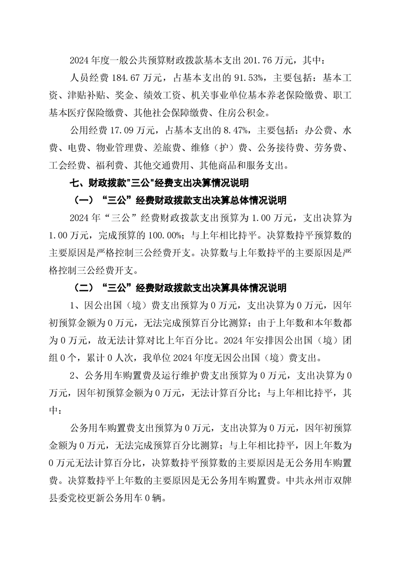 2024年度中共永州市双牌县委党校部门整体支出绩效自评报告