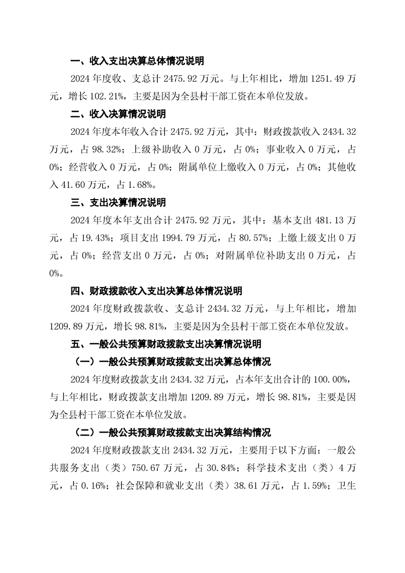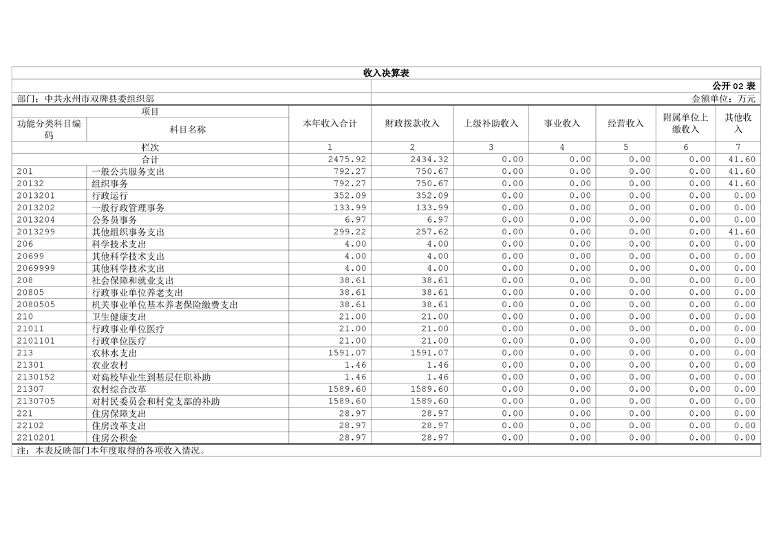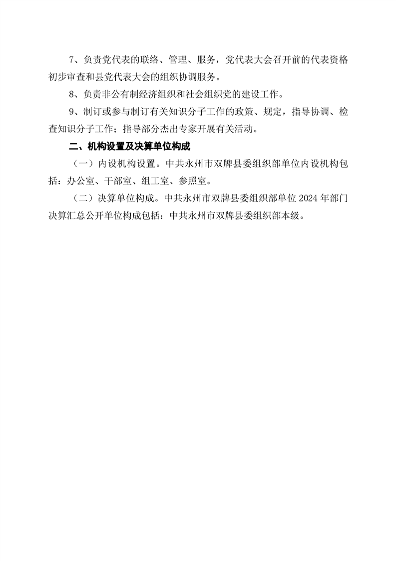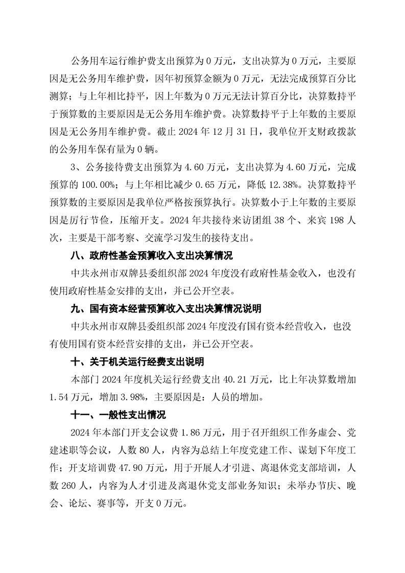 中共永州市双牌县委组织部2024年部门决算公开说明