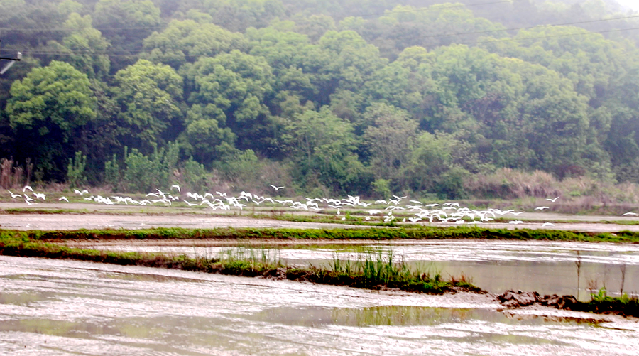 据了解,每年三月当地大田翻耕之际,便会吸引成群白鹭前来栖息觅食。肥沃的土壤富含有机质,为白鹭提供了充足的昆虫、泥鳅等天然饵料。它们或在田间觅食休憩,或梳理羽翼,或结伴翱翔,尽情徜徉在这片生态沃土之上。