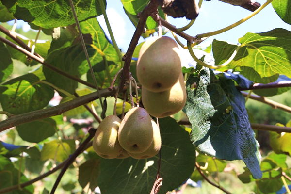 猕猴桃种植户梁光跃说:“我们种的红心猕猴桃,亩产有一千多斤。因为基地在雾区,虫害较少,少量虫子就用套果袋来防护,是绿色无公害食品,欢迎大家来品尝!”