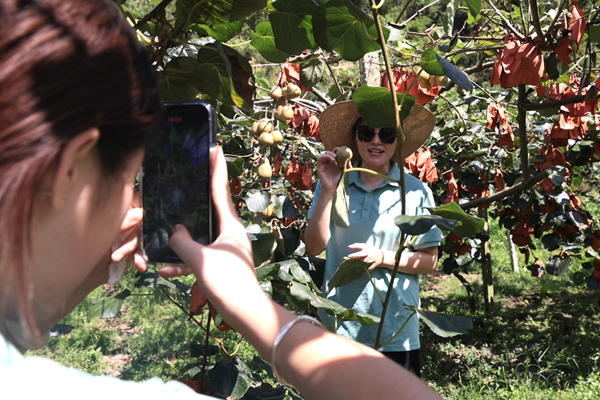 “我在朋友圈看到这里的采摘信息,周末就带家人来体验,既能亲近自然,又能吃到新鲜水果,特别开心。这猕猴桃香甜可口,还带着蜂蜜味。”游客郭清笑着说道。