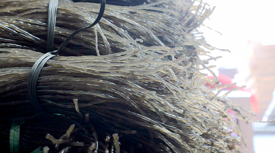 为保障红薯粉品质,这里的每一道工序都坚持手工操作,从红薯的挑选到淀粉的提取,再到粉条的晾晒,历经8道工序且不添加任何防腐剂和添加剂。
