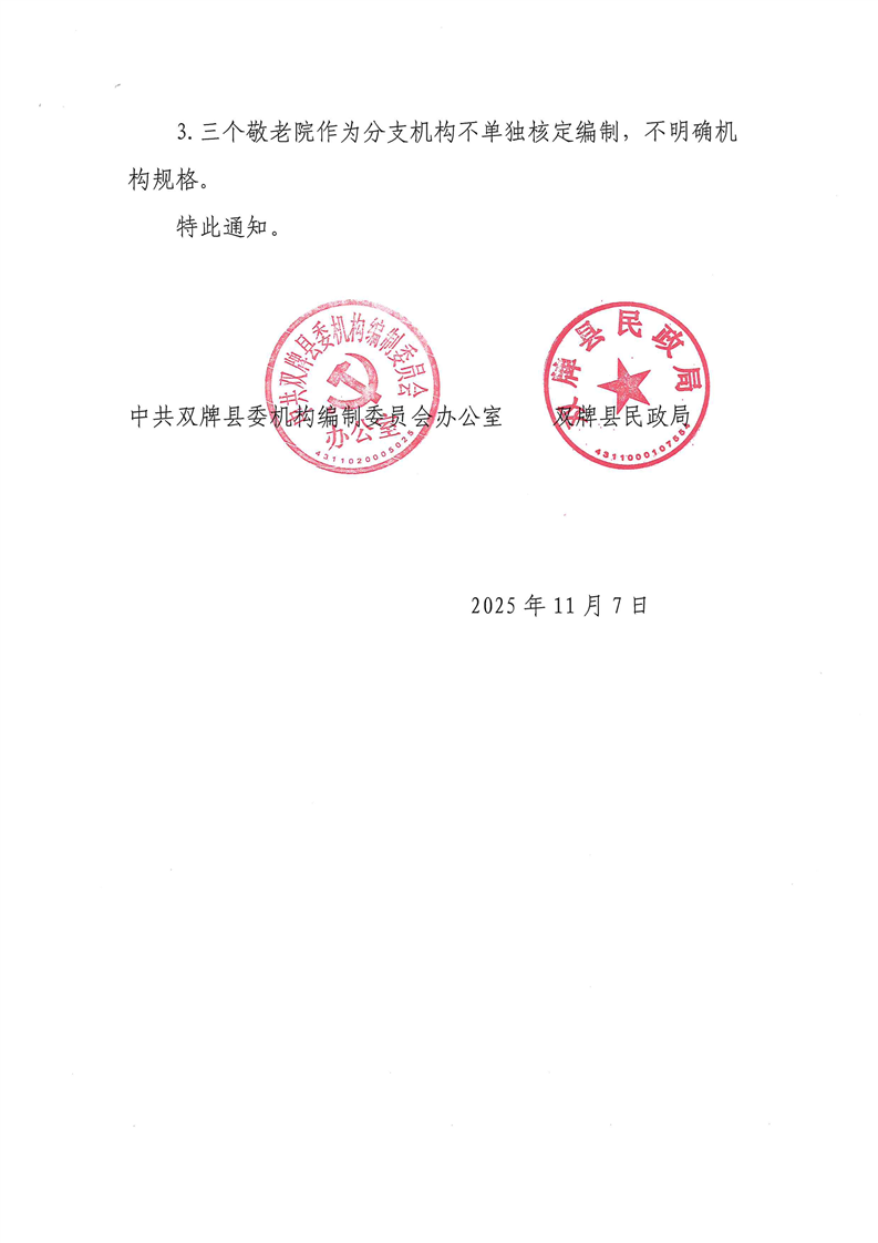 关于明确五里牌中心敬老院等3个中心敬老院相关机构编制事项的通知