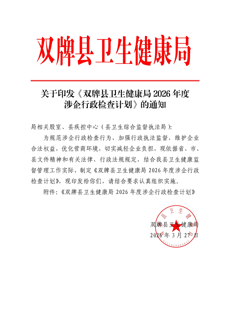 关于印发《双牌县卫生健康局2026年度涉企行政检查计划》的通知