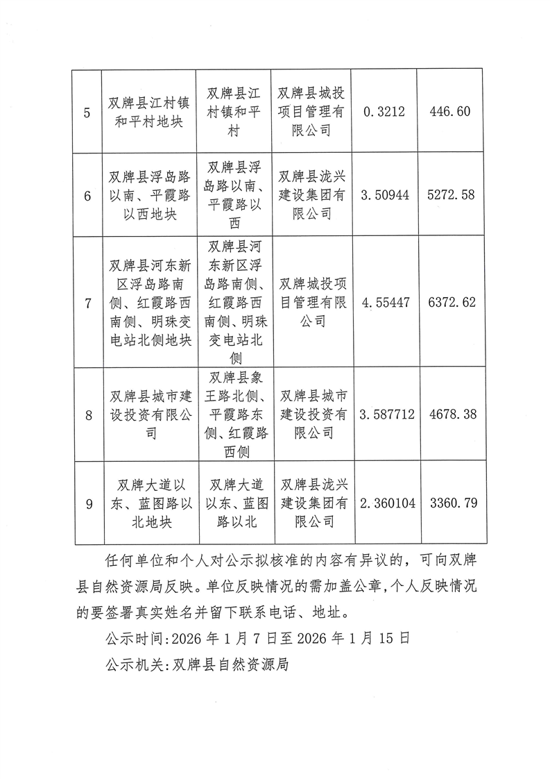 双牌县自然资源局关于2026年双牌县第二批土地储备专项债券项目地块收储价格的公示