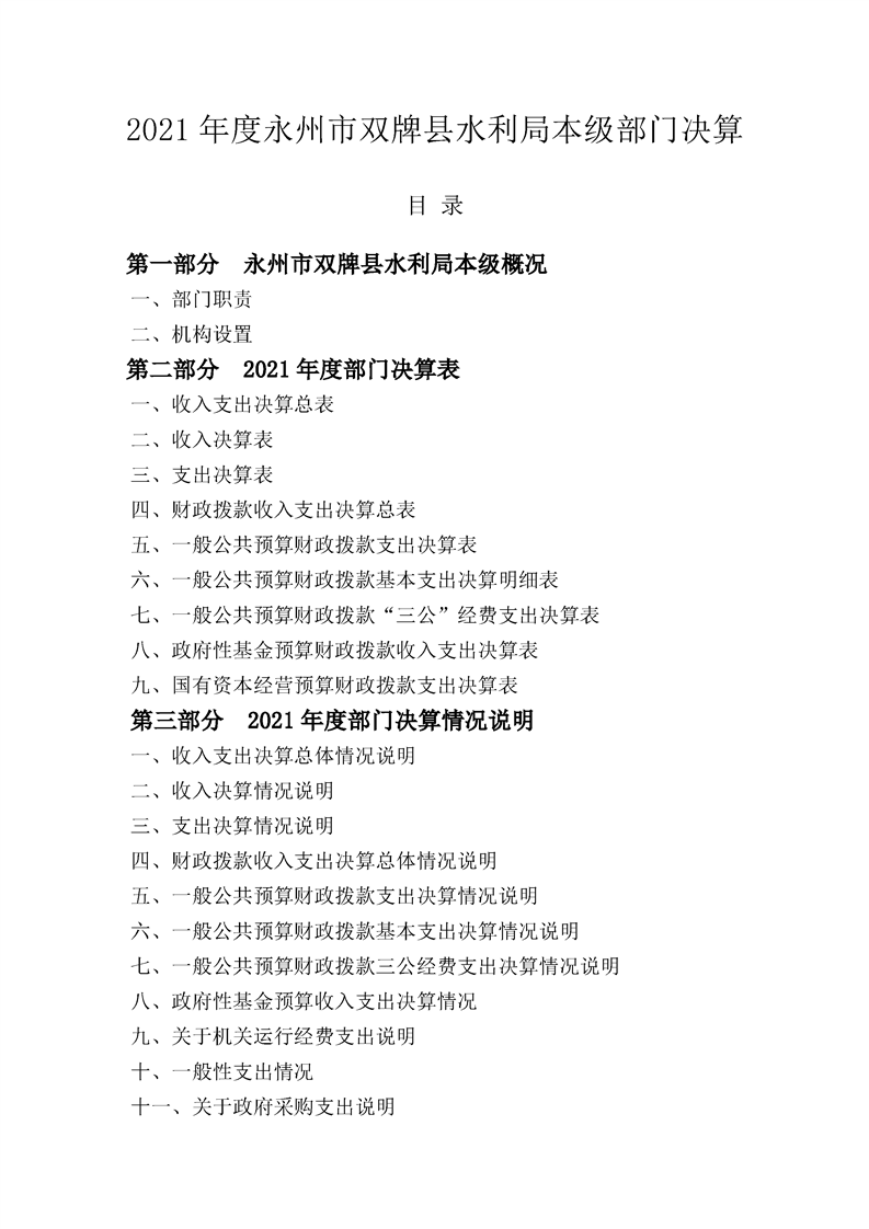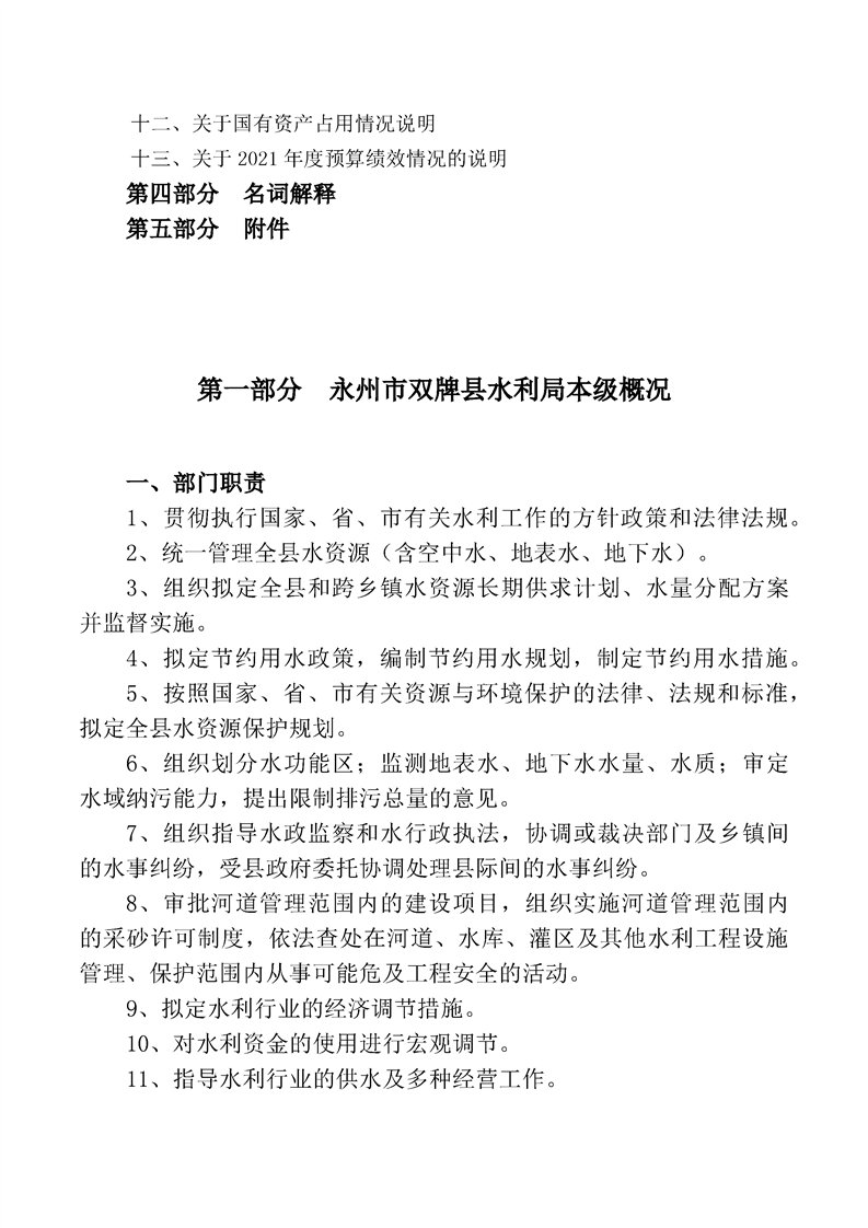 2021年度部门决算公开说明永州市双牌县水利局本级