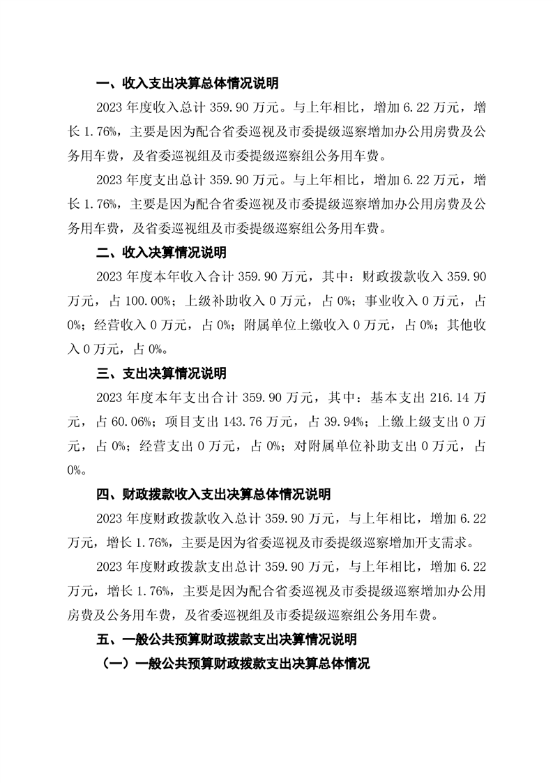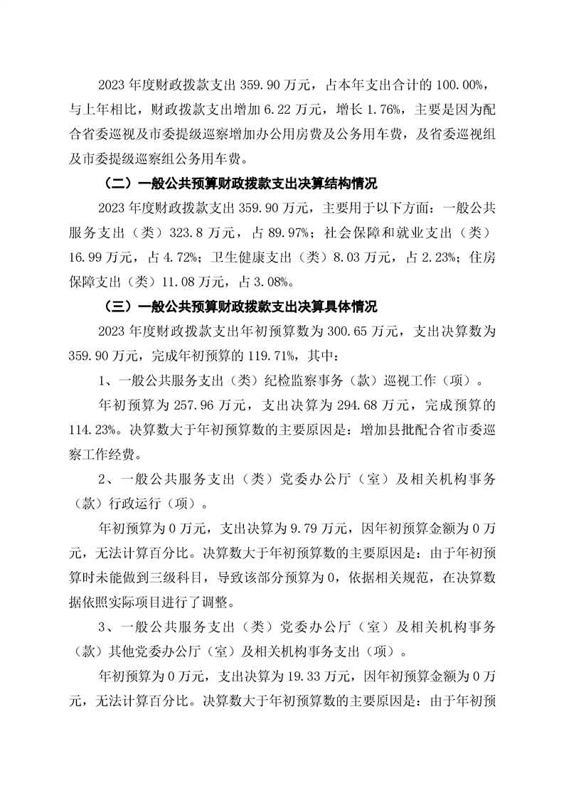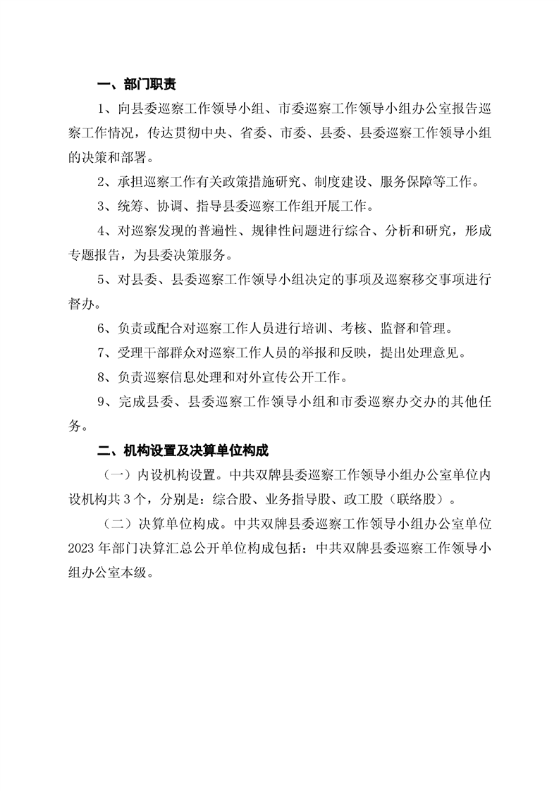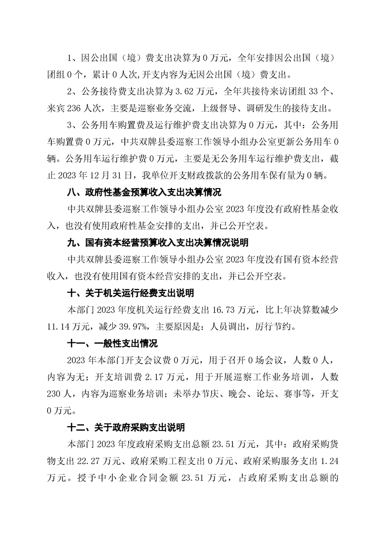 中共双牌县委巡察工作领导小组办公室2023年部门决算公开说明