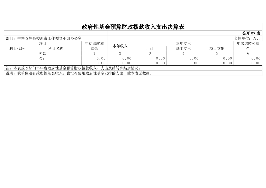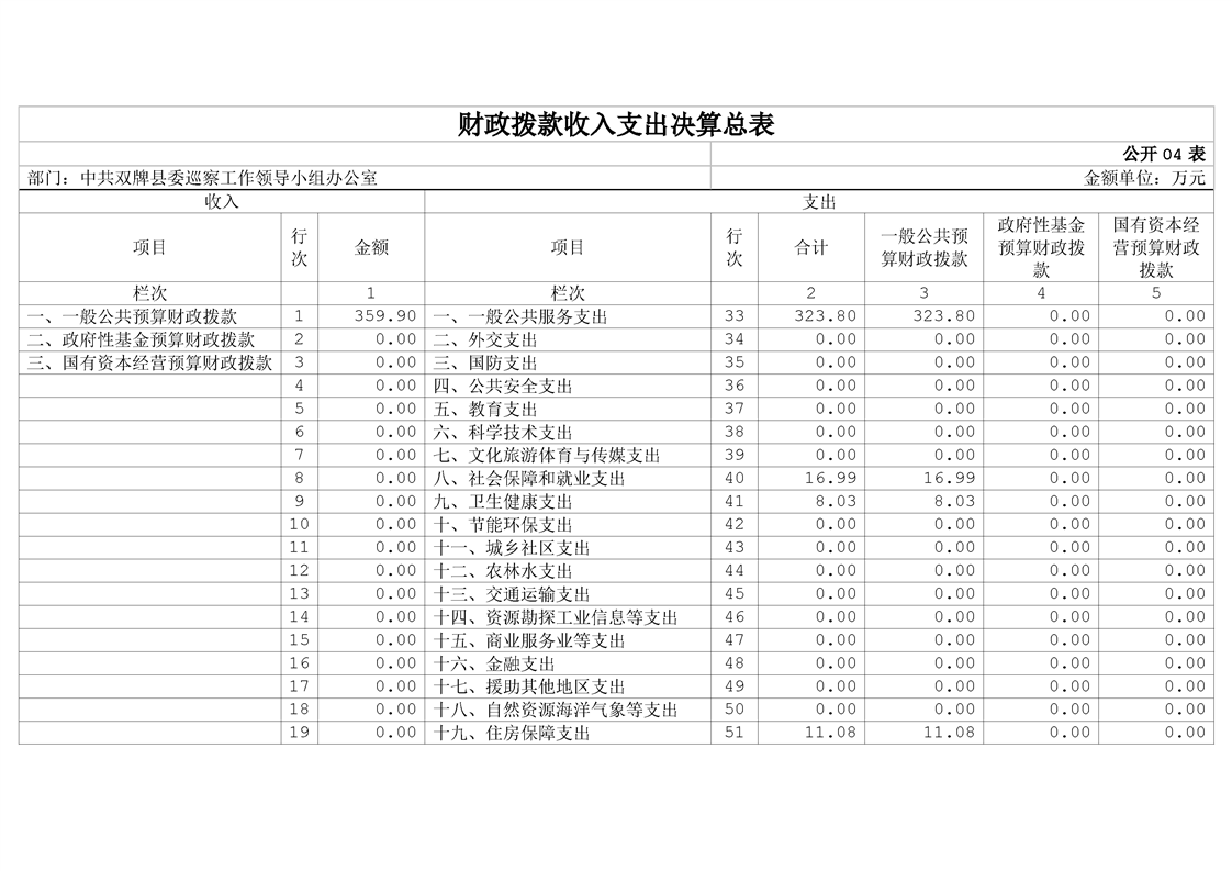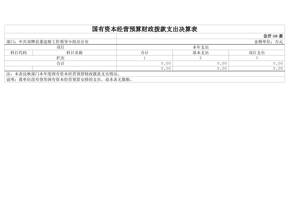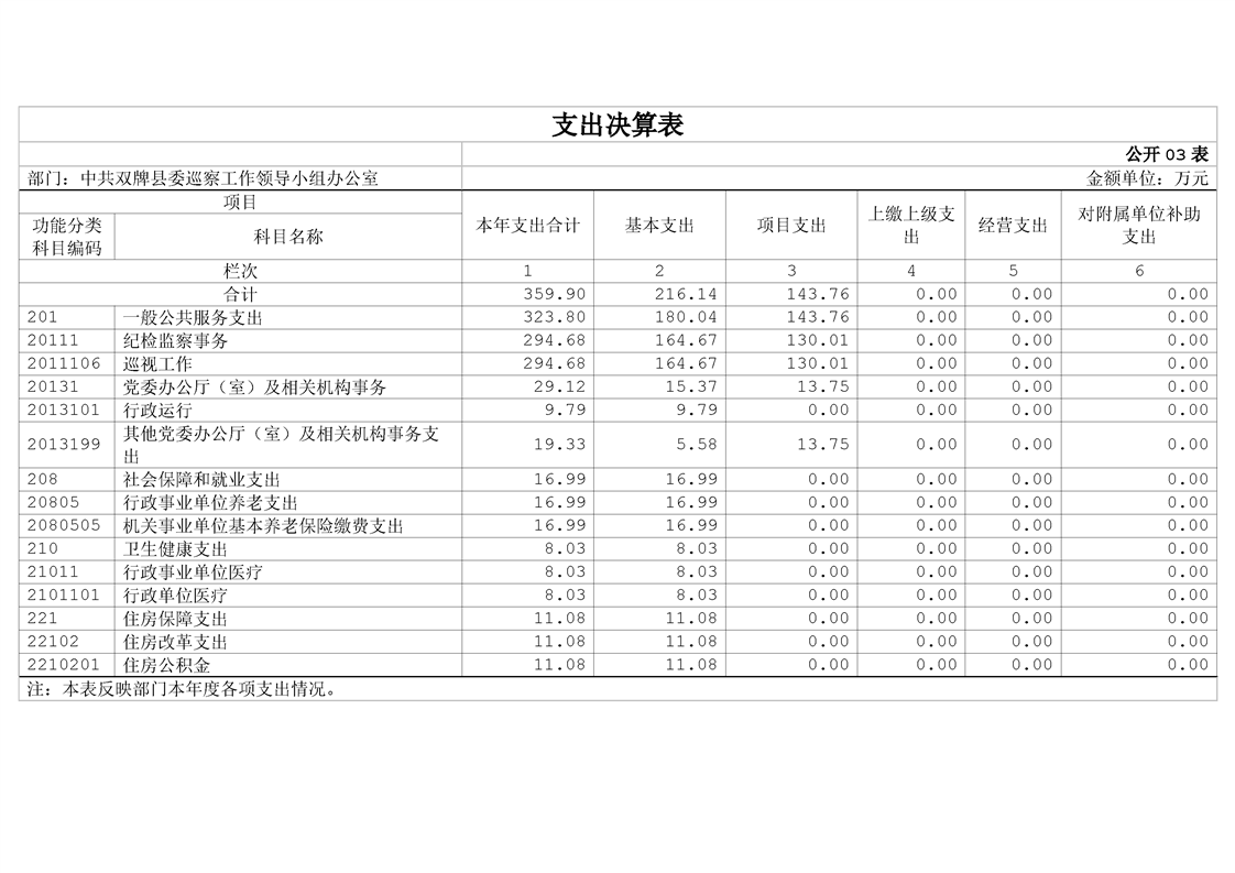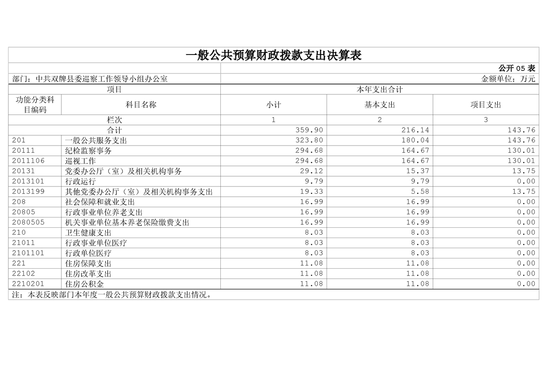 中共双牌县委巡察工作领导小组办公室2023年部门决算公开说明
