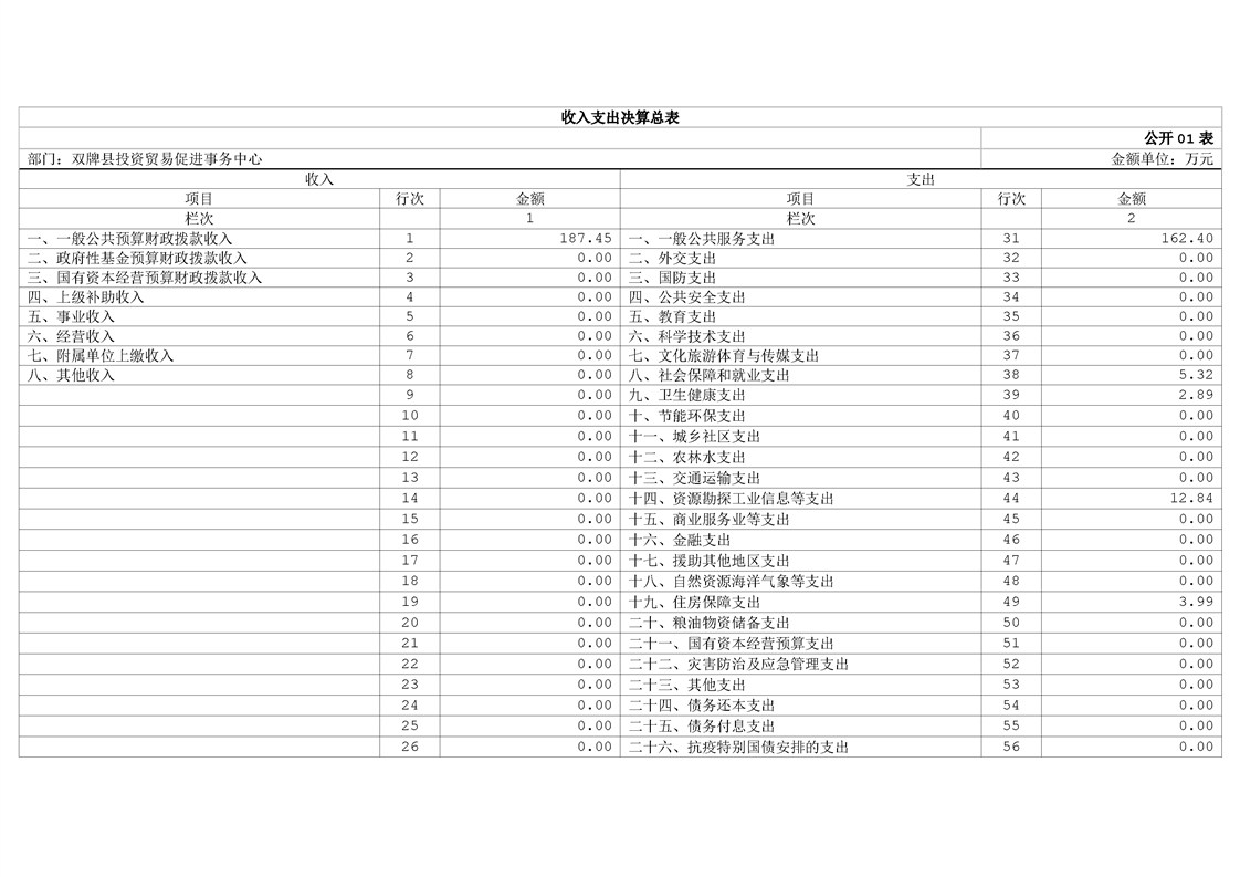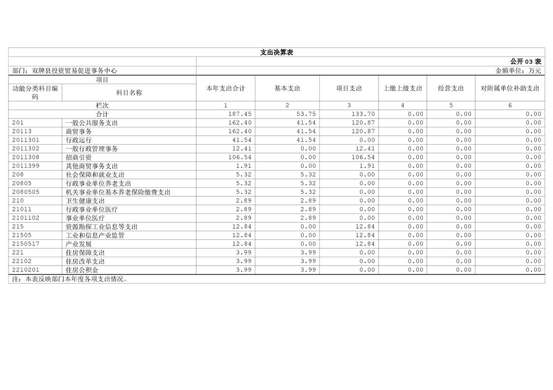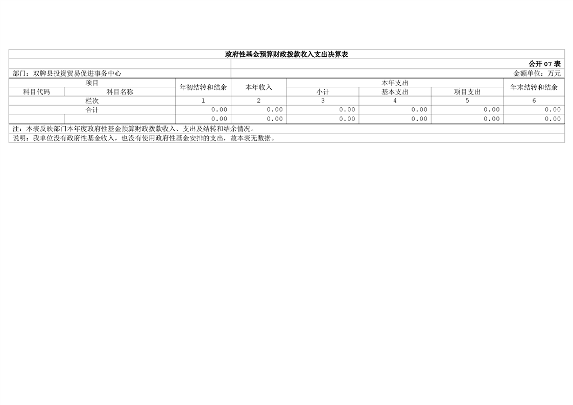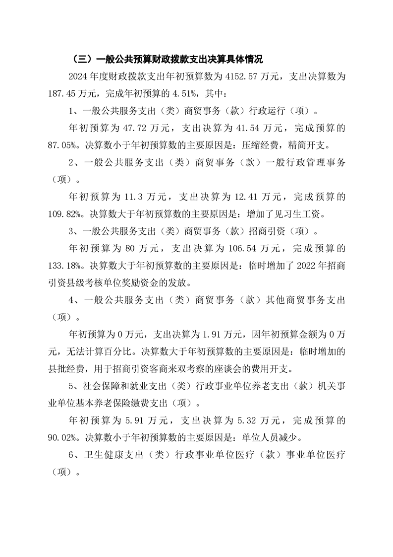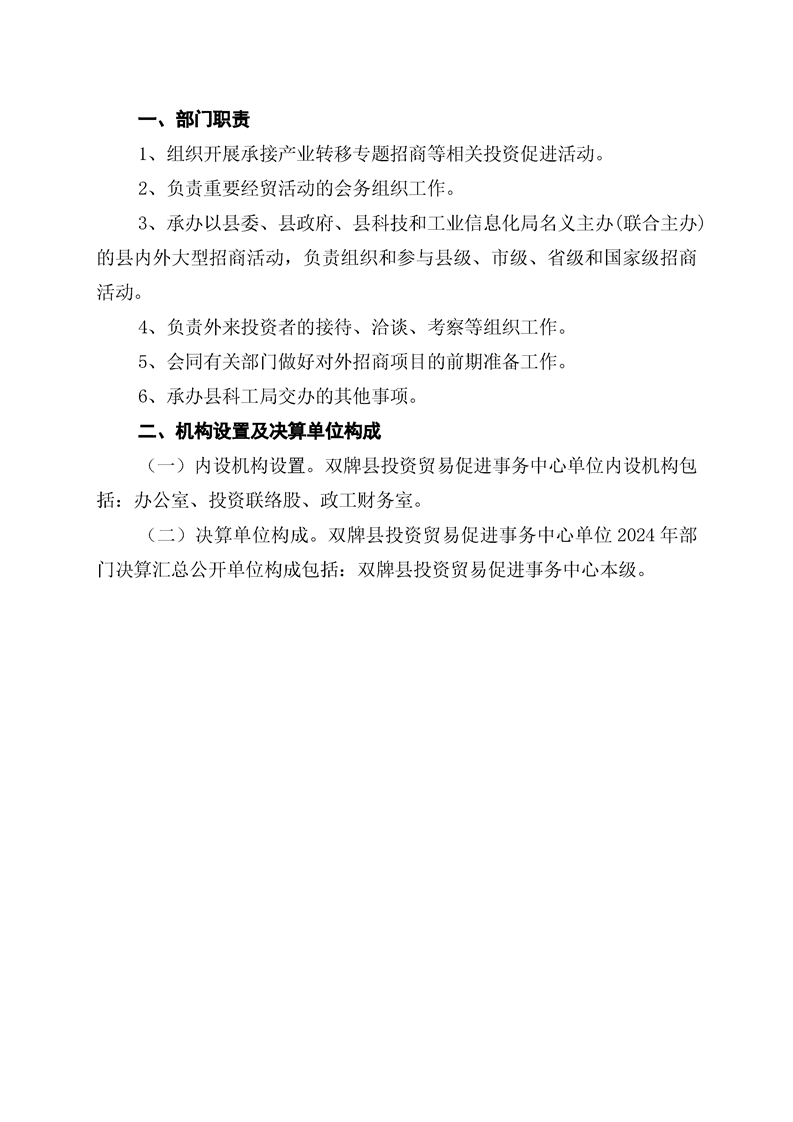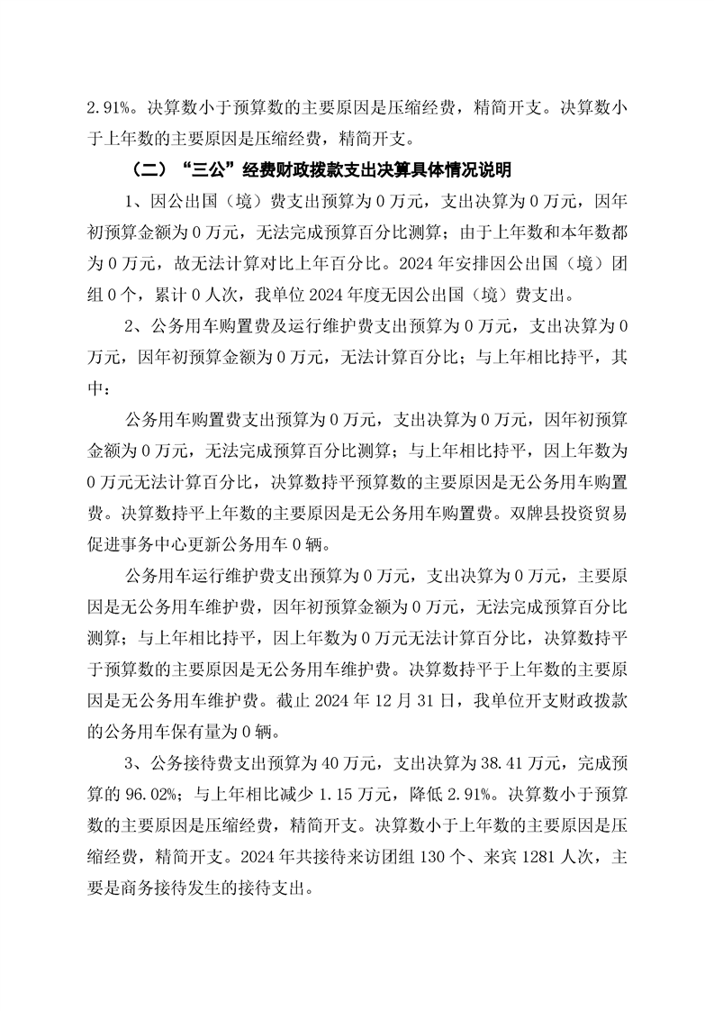 双牌县投资贸易促进事务中心2024年部门决算公开说明