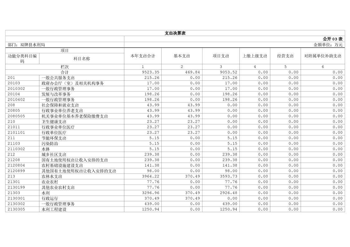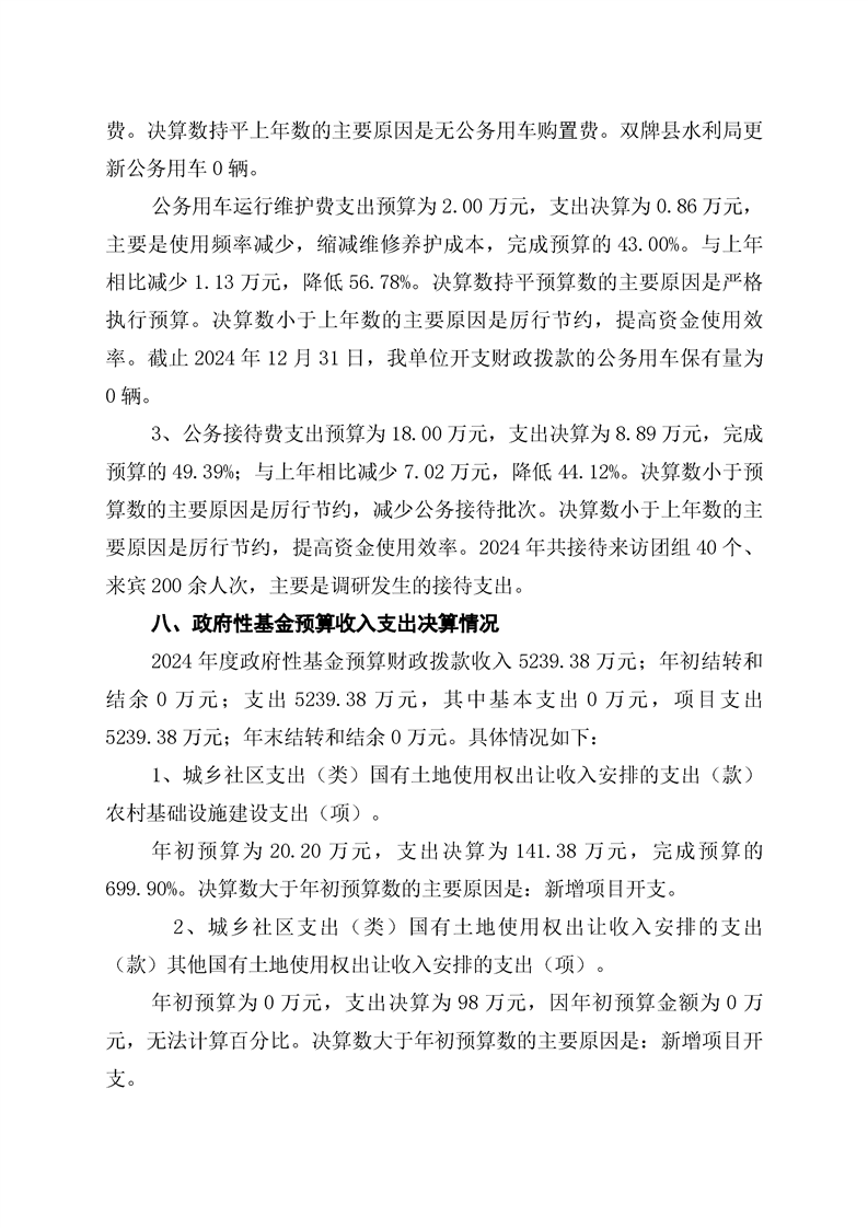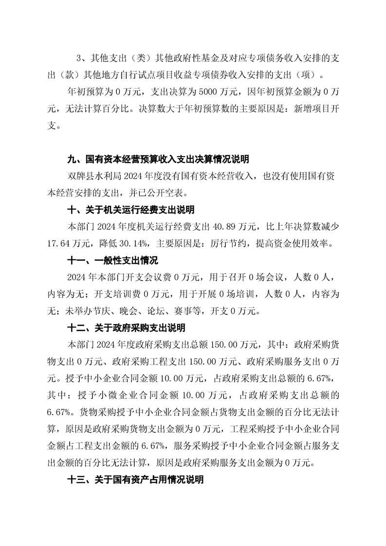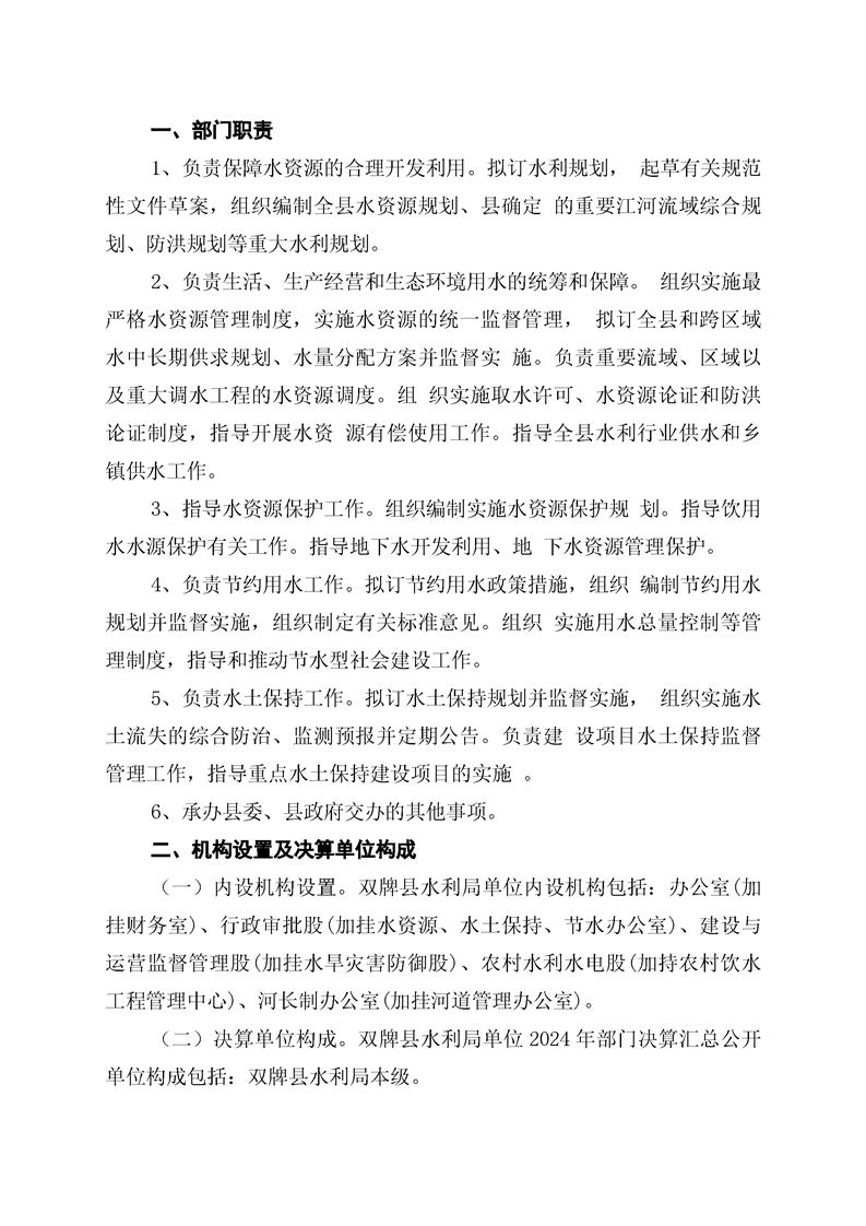 2024年度双牌县水利局部门整体支出绩效自评报告
