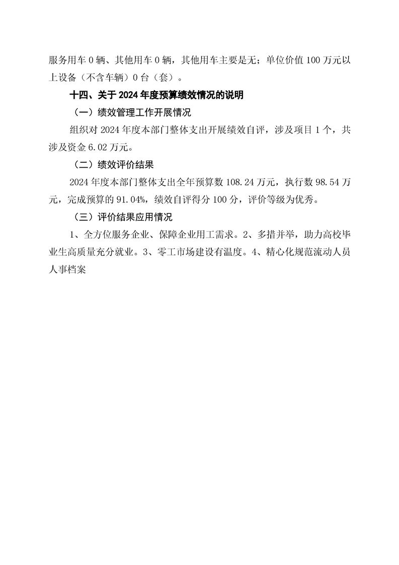 2024年度双牌县人力资源管理服务中心部门整体支出绩效自评报告
