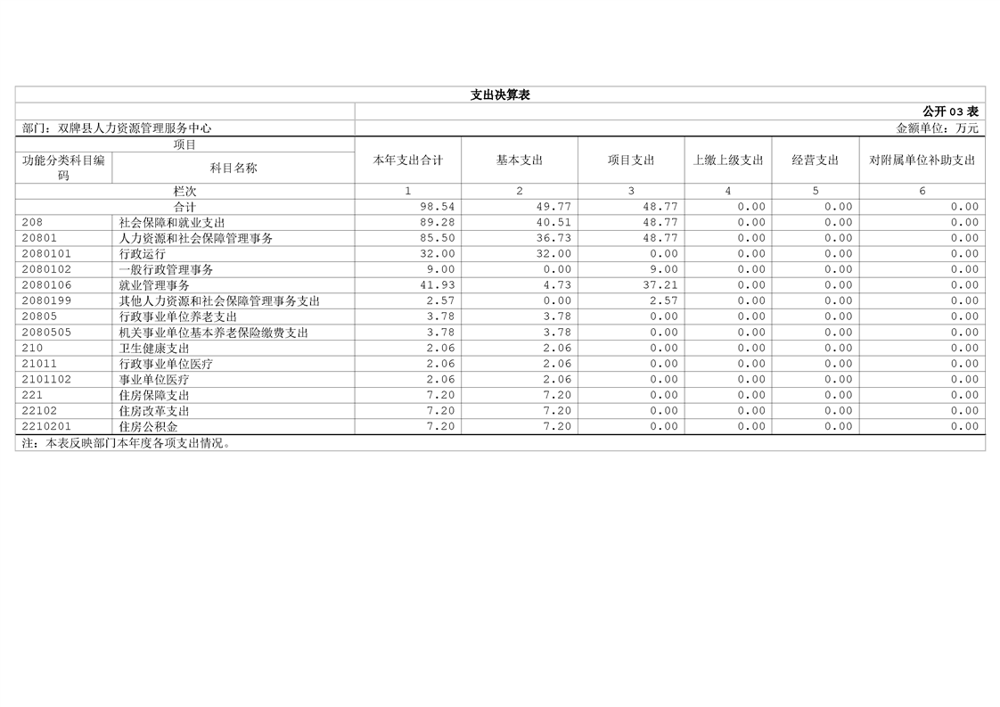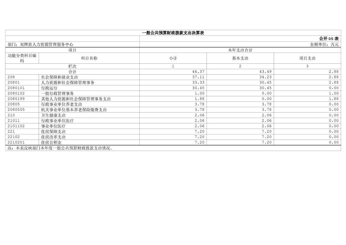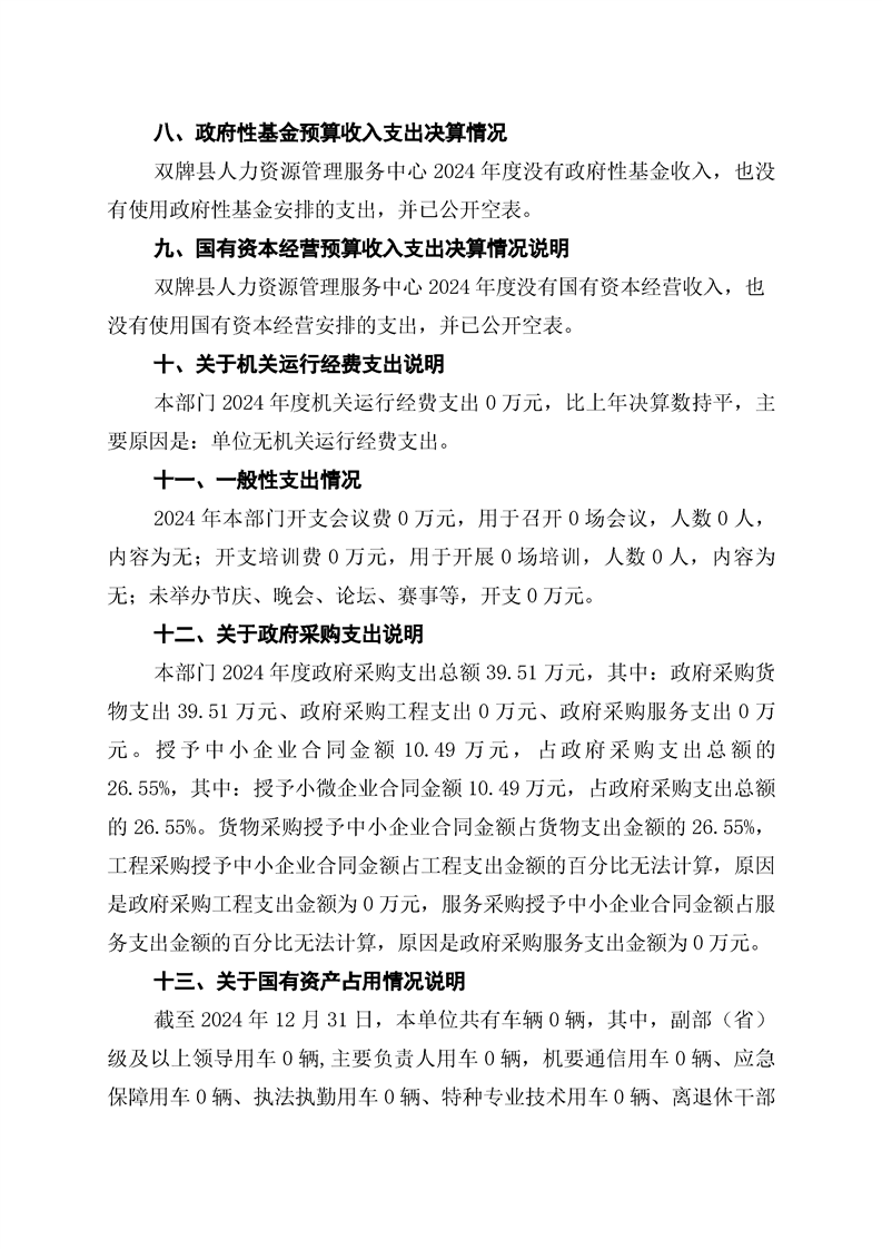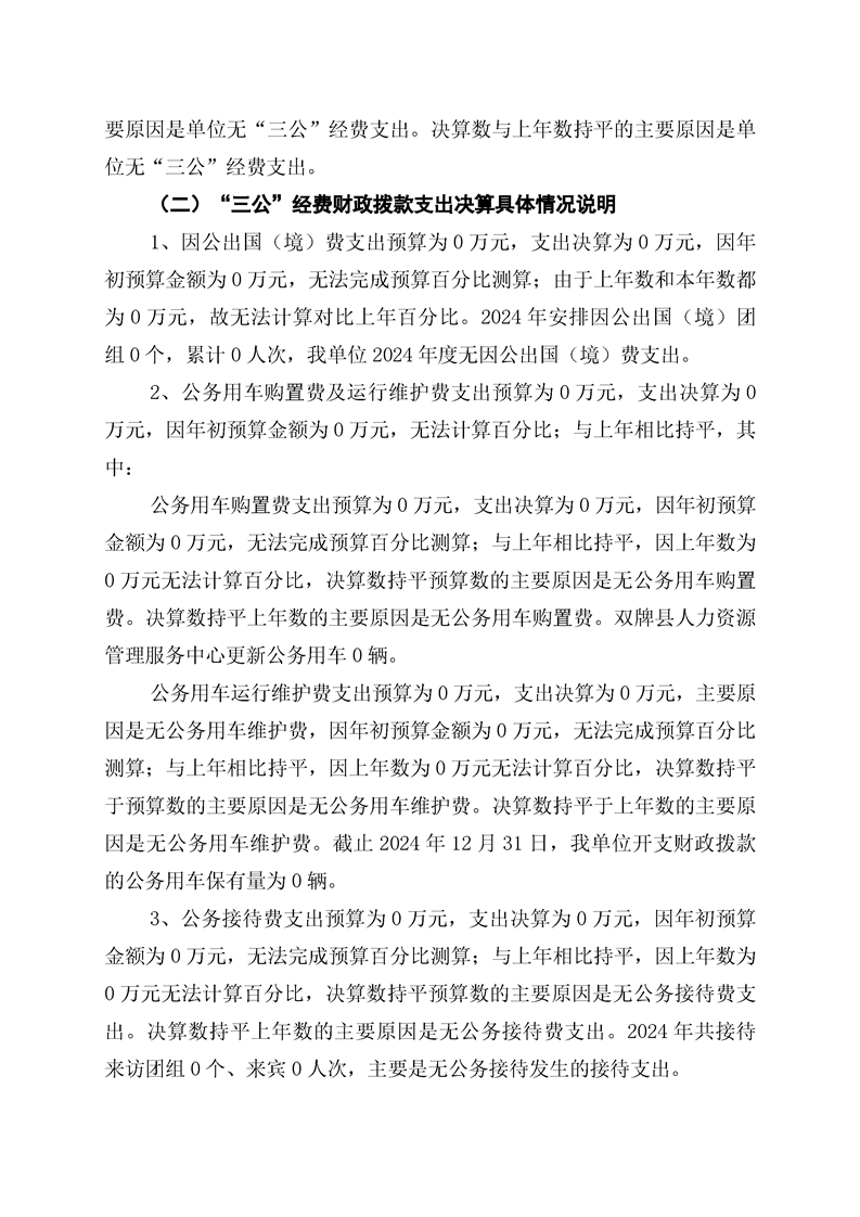 双牌县人力资源管理服务中心2024年部门决算公开说明