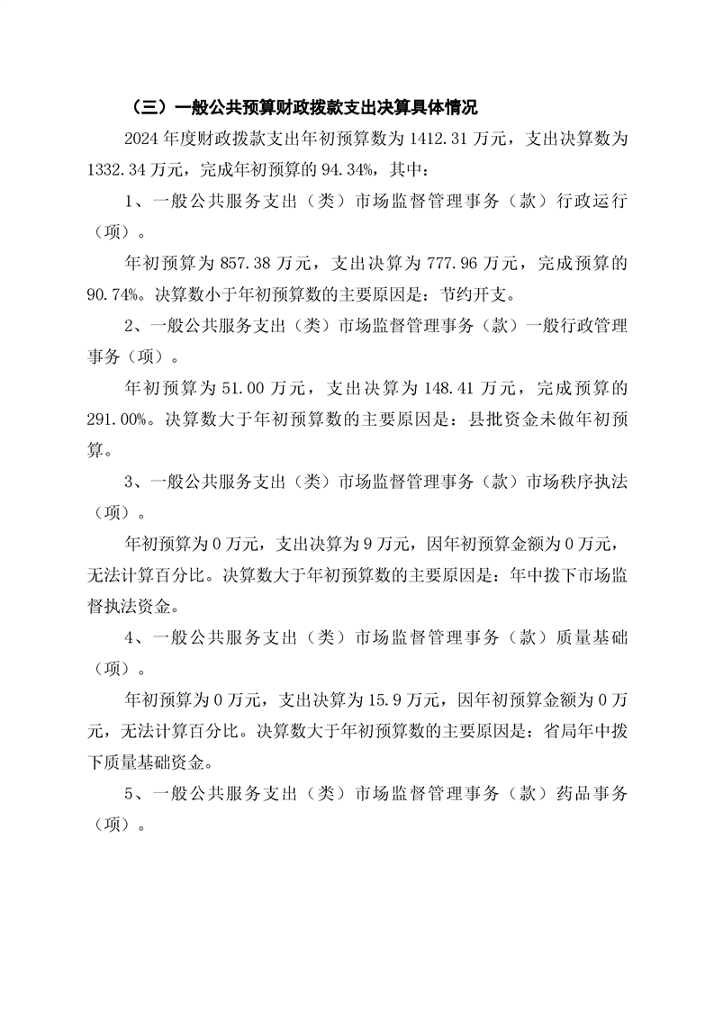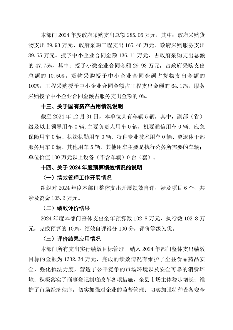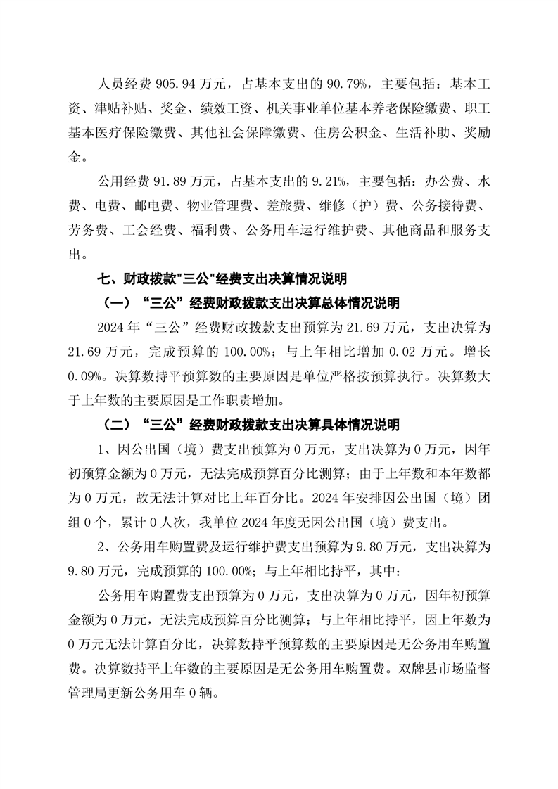 2024年度双牌县市场监督管理局部门整体支出绩效自评报告