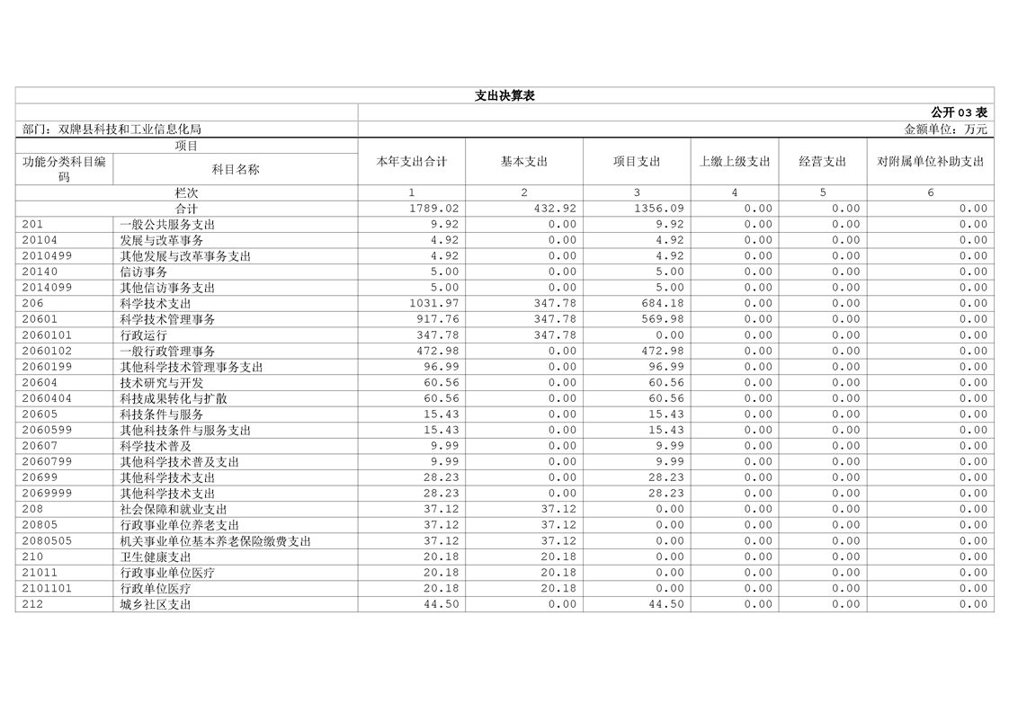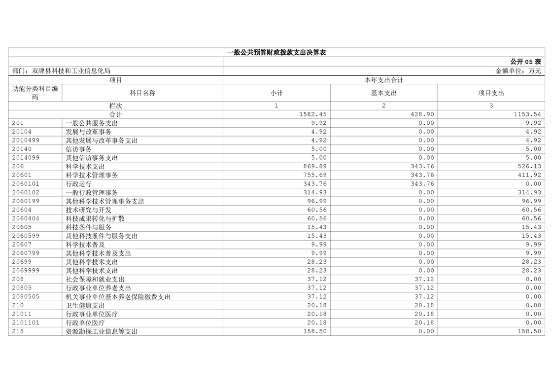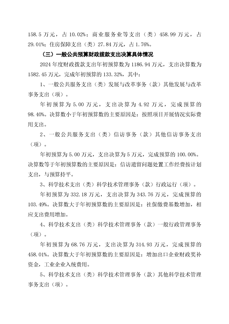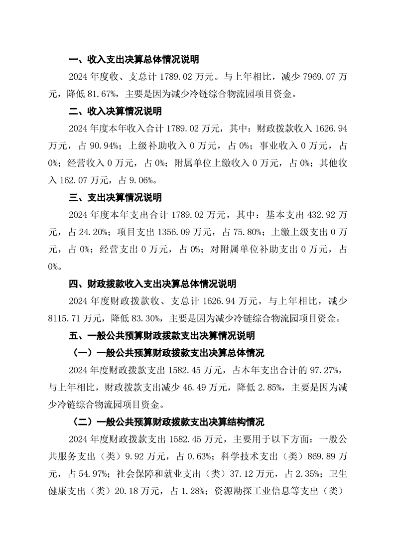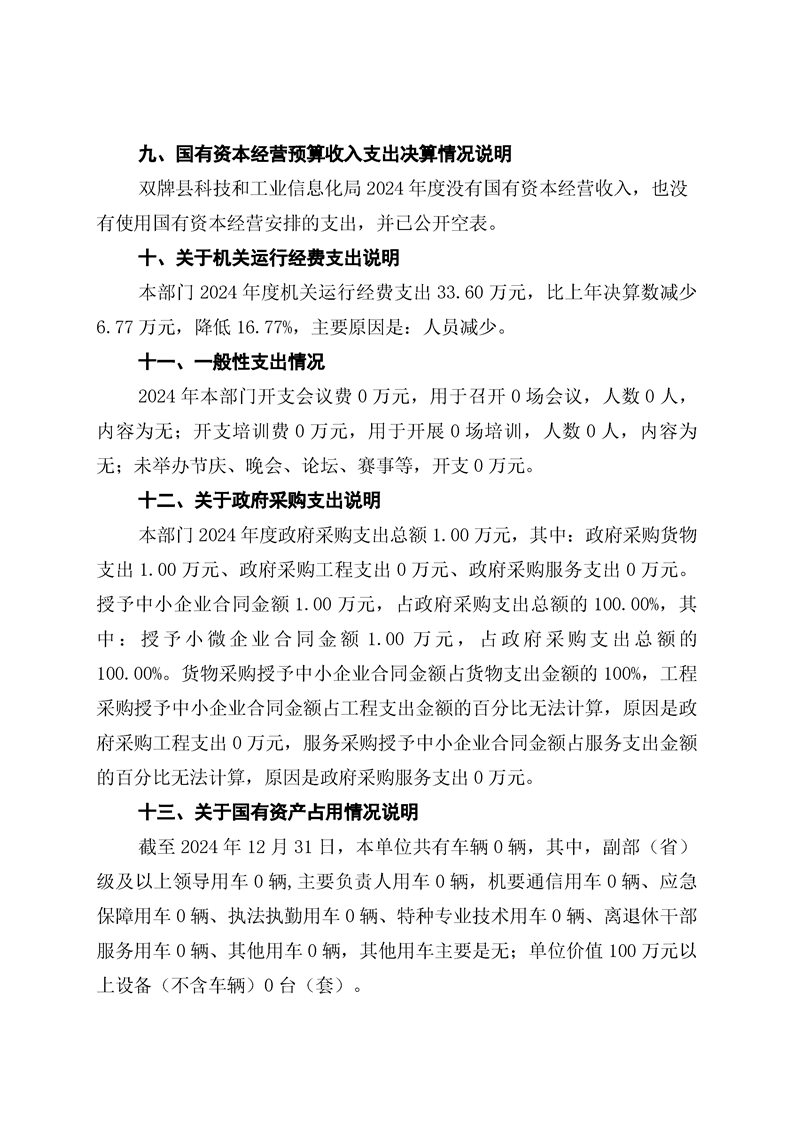 双牌县科技和工业信息化局2024年部门决算公开说明