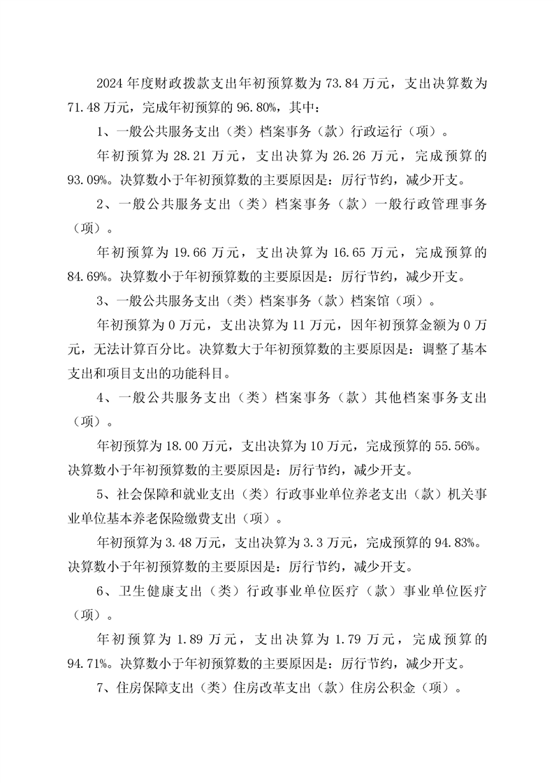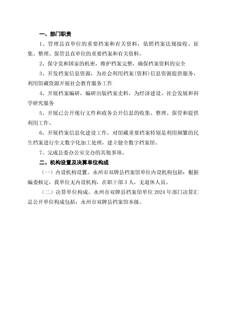 2024年度永州市双牌县档案馆部门整体支出绩效自评报告