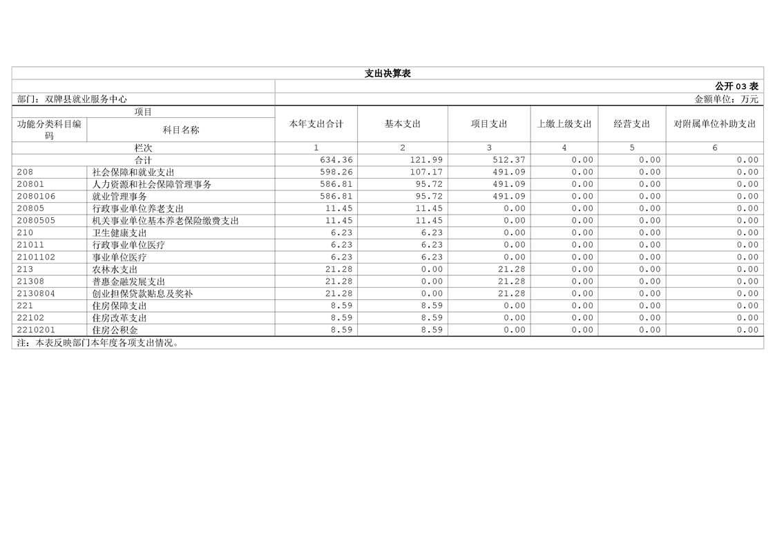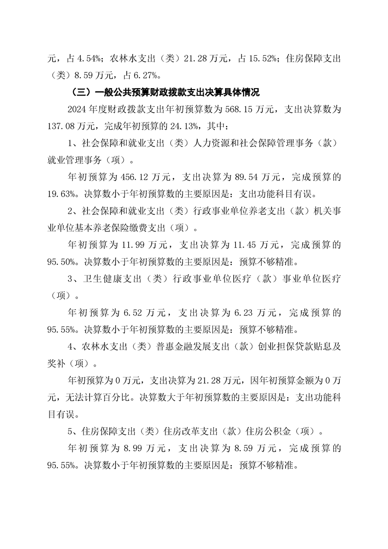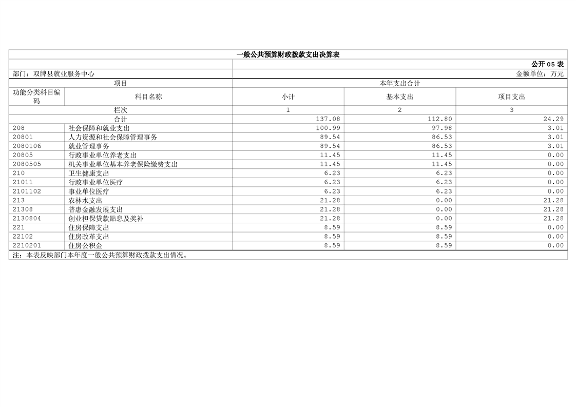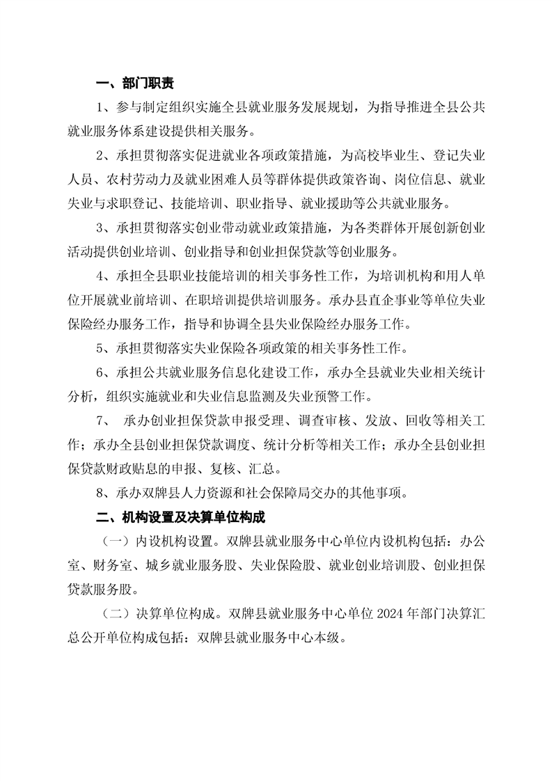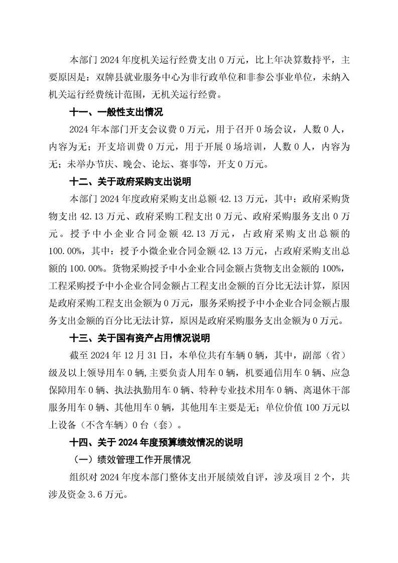 2024年度双牌县就业服务中心部门整体支出绩效自评报告
