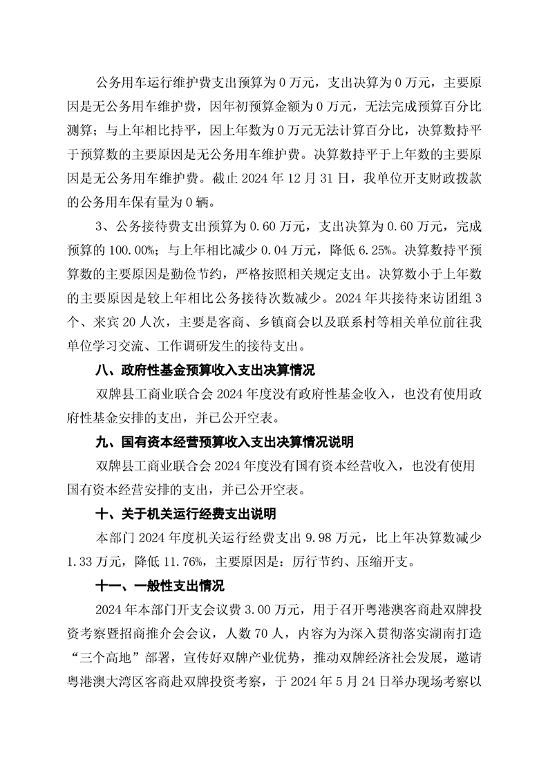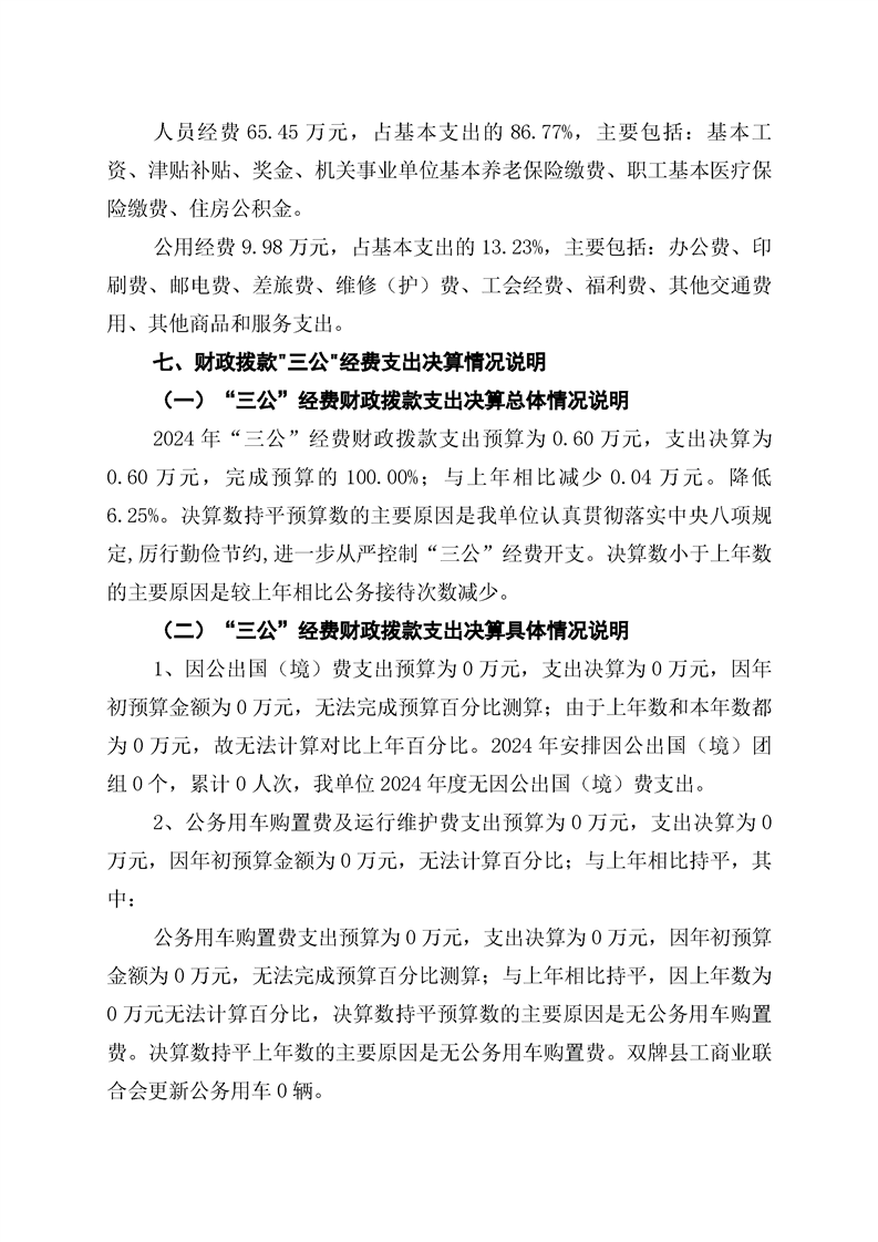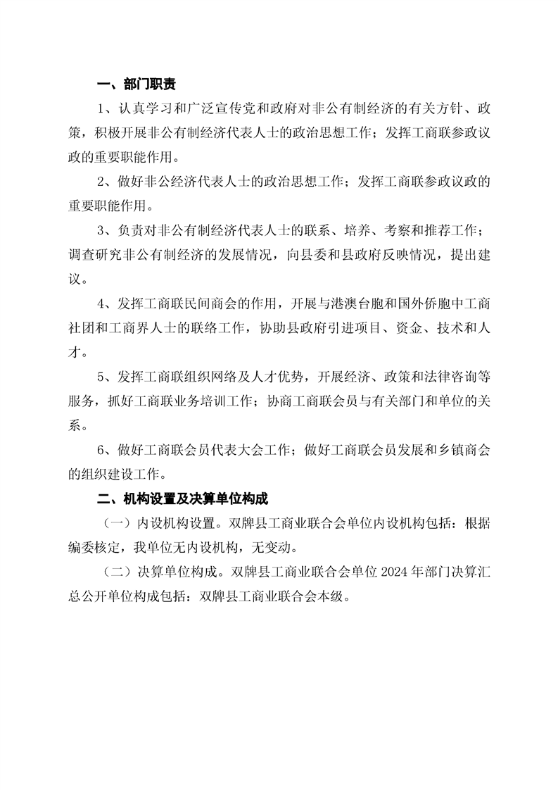 2024年度双牌县工商业联合会部门整体支出绩效自评报告