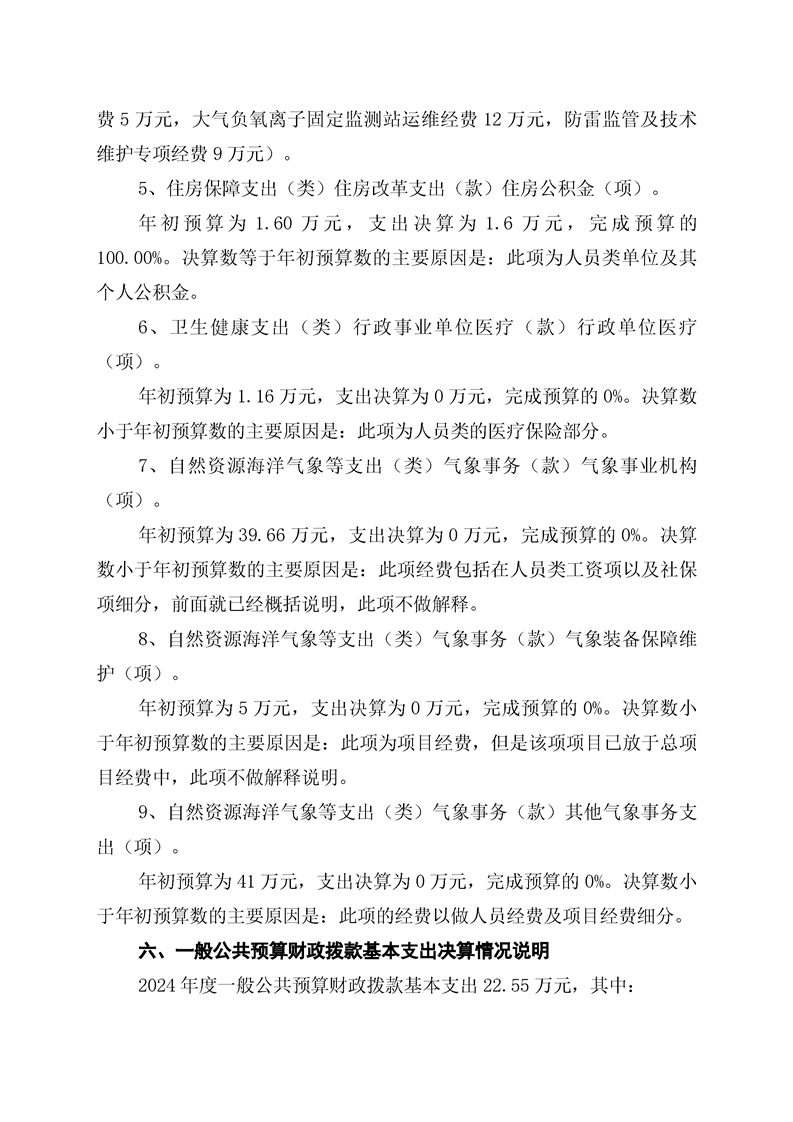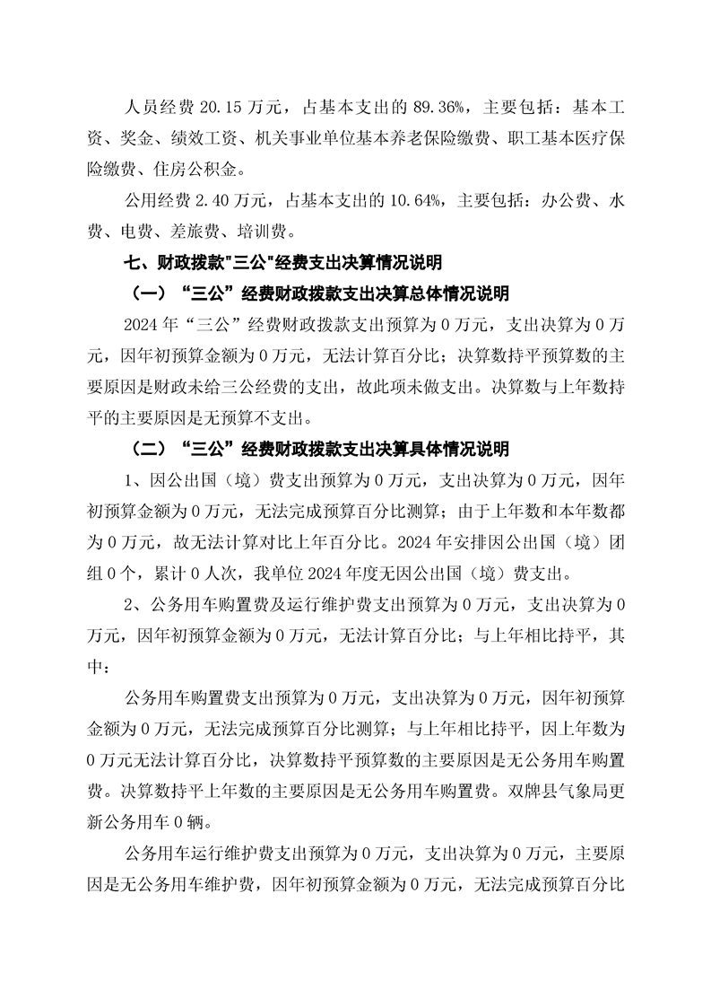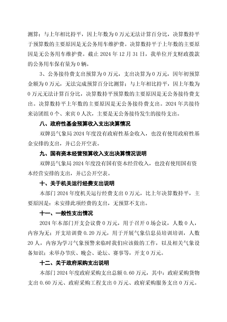 双牌县气象局2024年部门决算公开说明