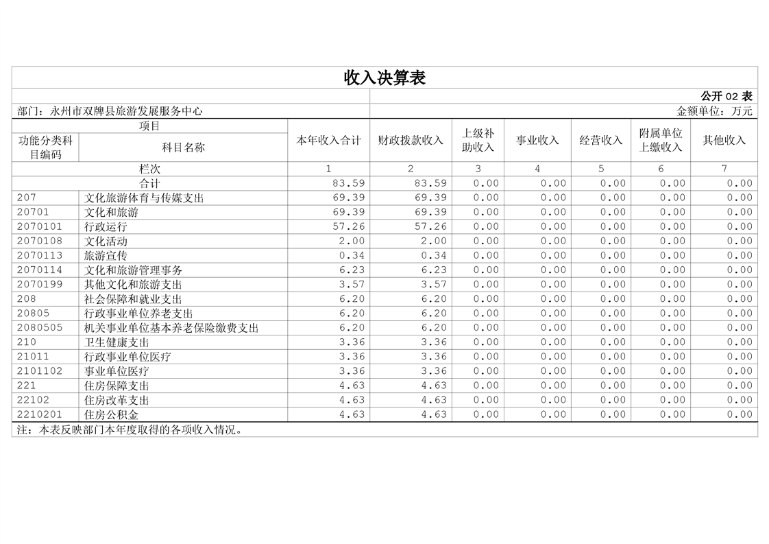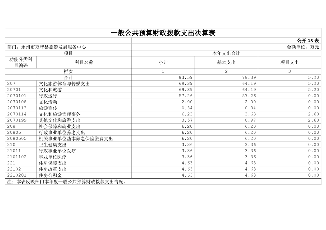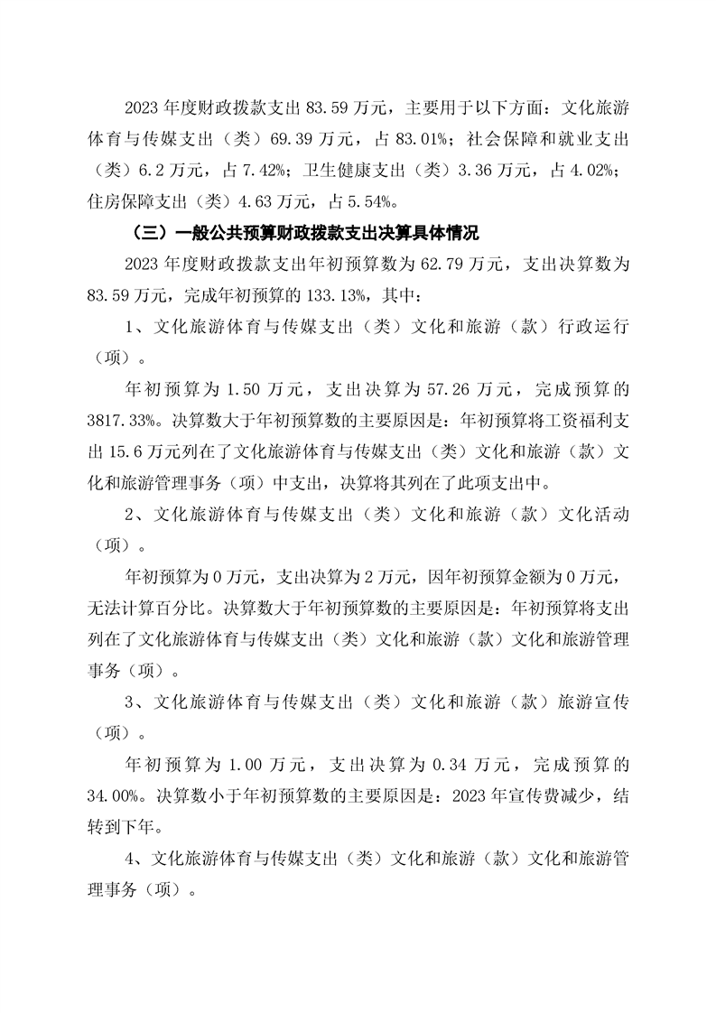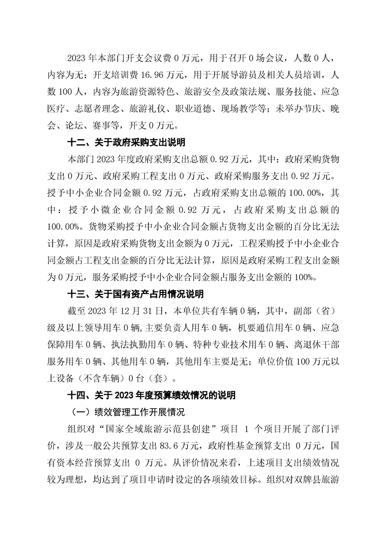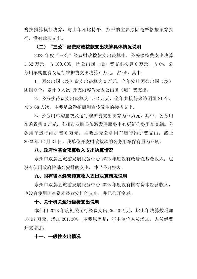 永州市双牌县旅游发展服务中心2023年部门决算公开说明