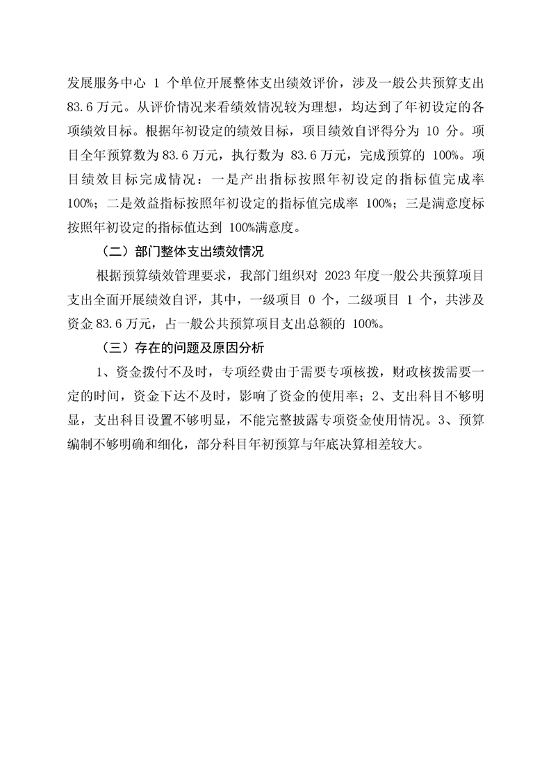 2023年度旅游发展服务中心部门整体支出绩效评价报告