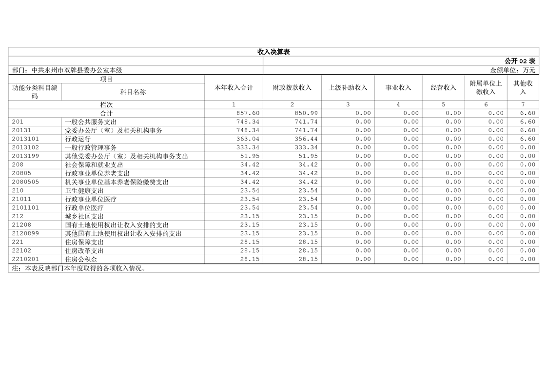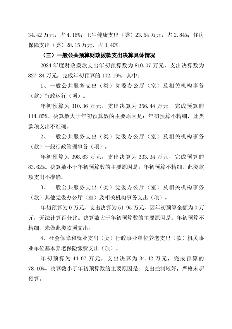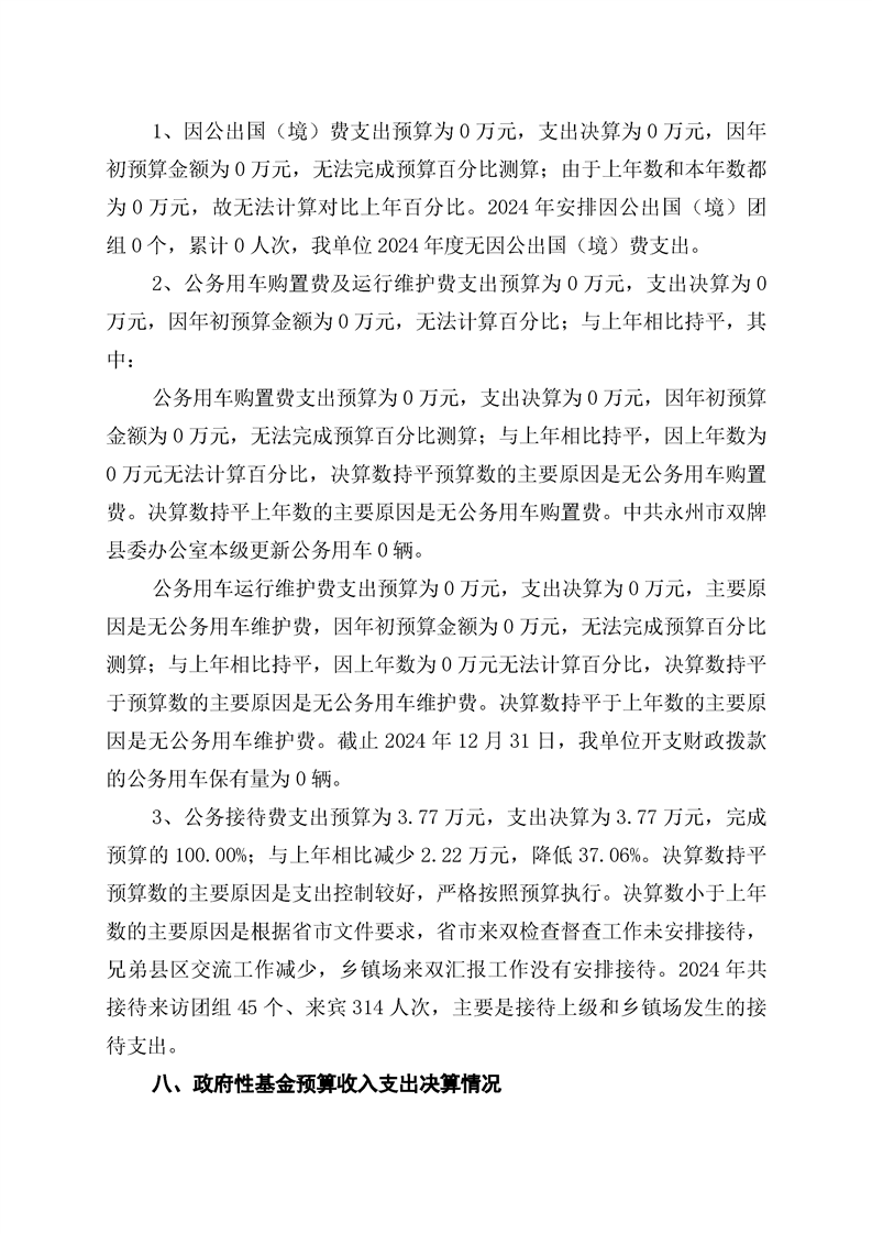 中共永州市双牌县委办公室本级2024年部门决算公开说明