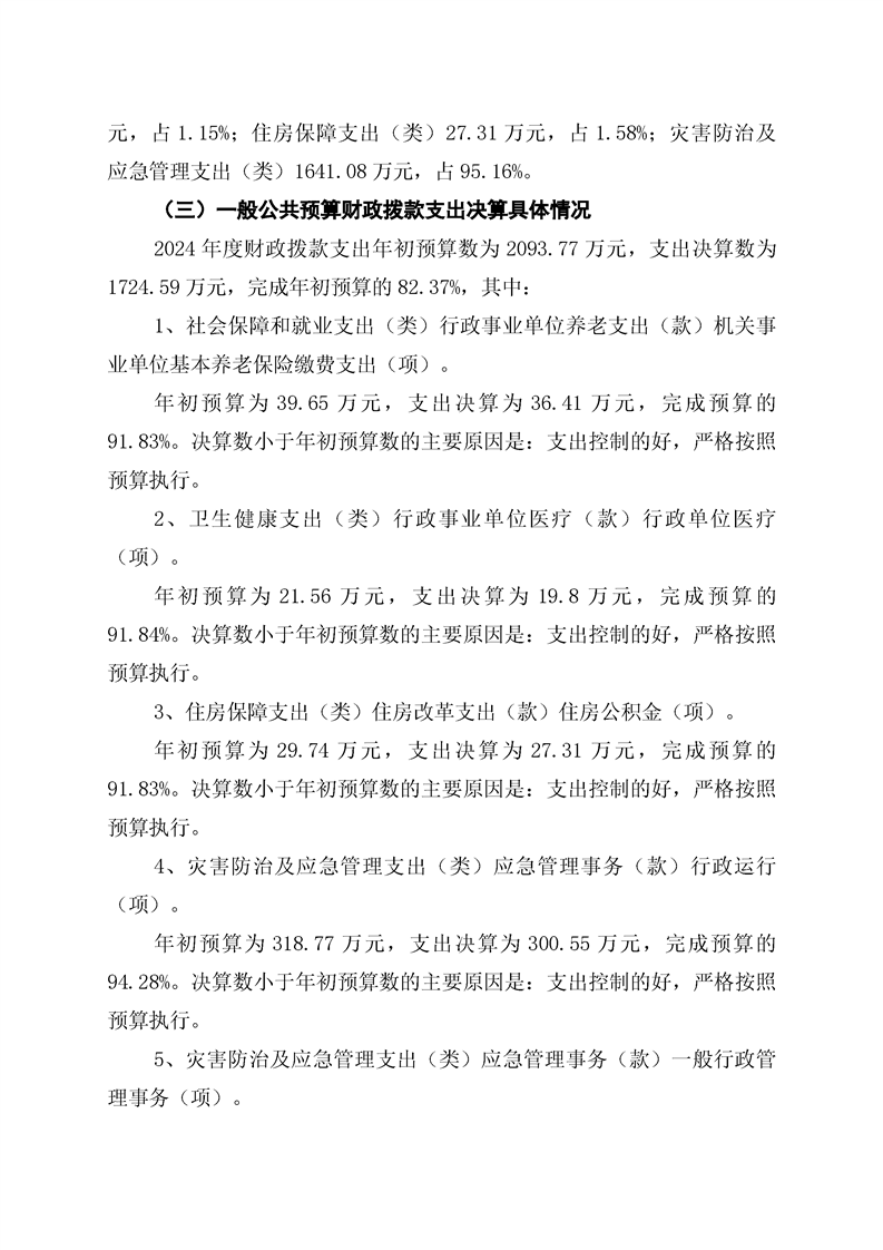 2024年度双牌县应急管理局部门整体支出绩效自评报告