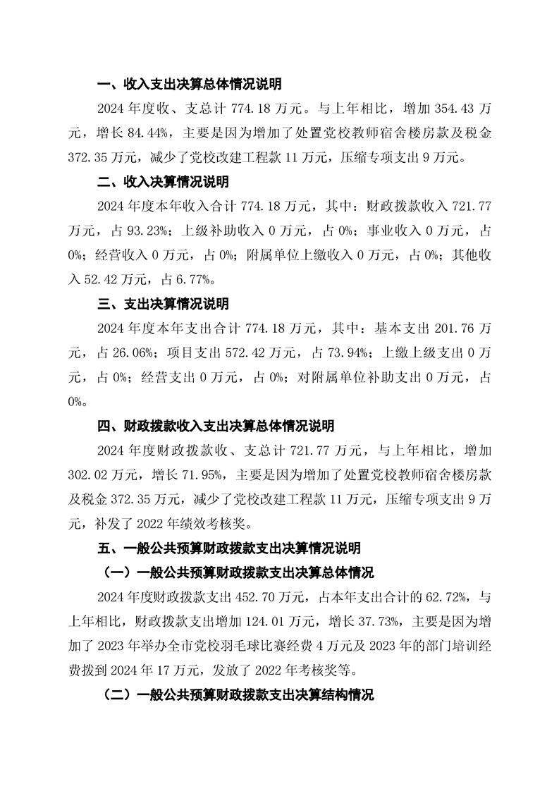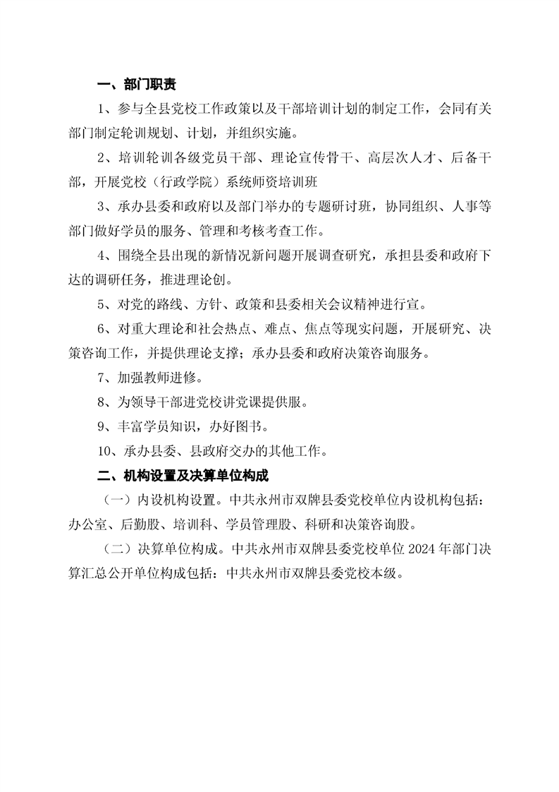 2024年度中共永州市双牌县委党校部门整体支出绩效自评报告