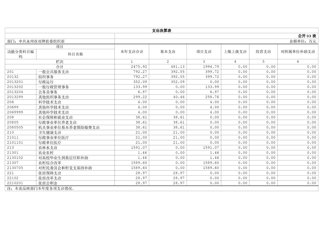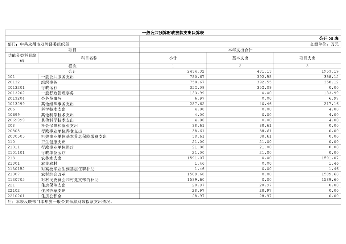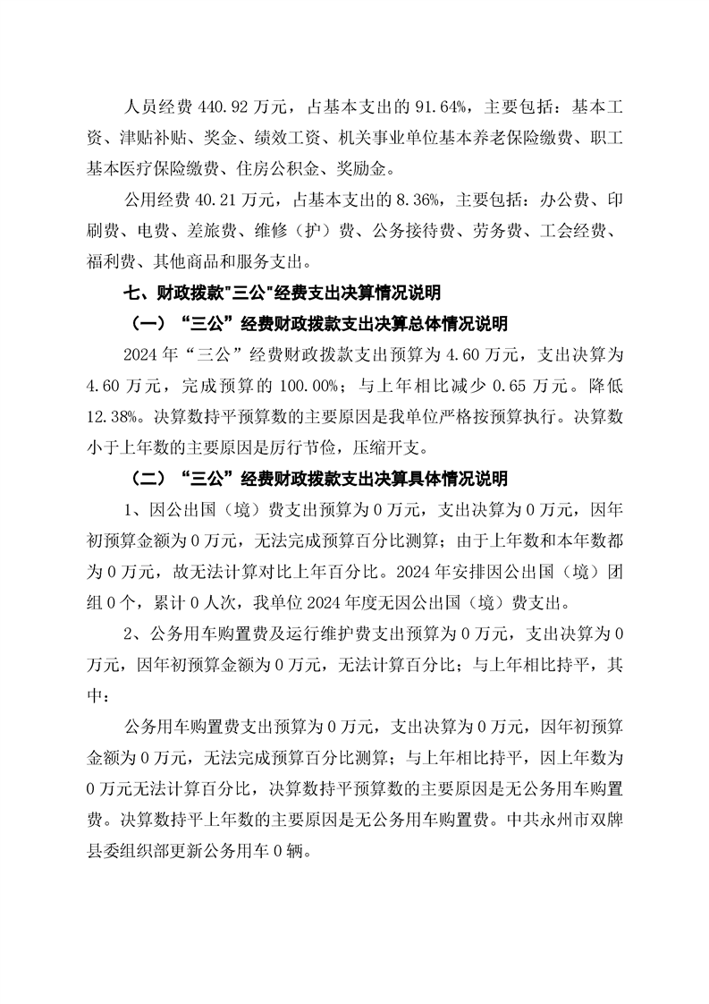 中共永州市双牌县委组织部2024年部门决算公开说明