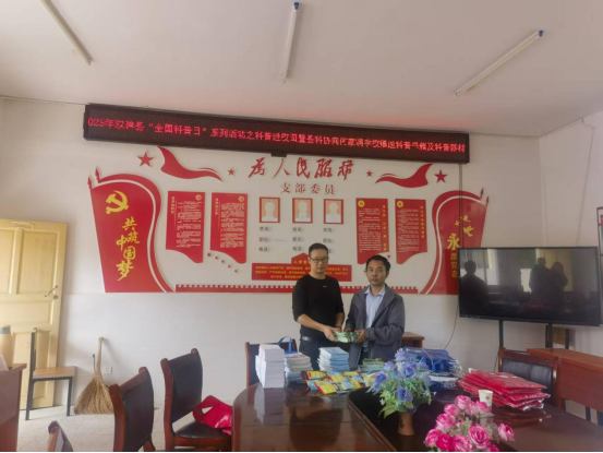 图 1 双牌县2025年“全国科普月”系列活动之科普进校园暨县科协向何家洞学校赠送科普书籍及科普器材