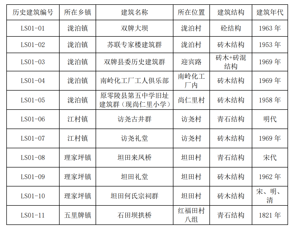 双牌县第一批历史建筑保护单位名单