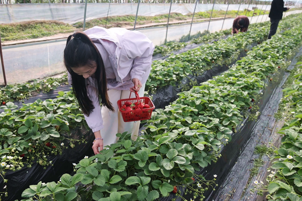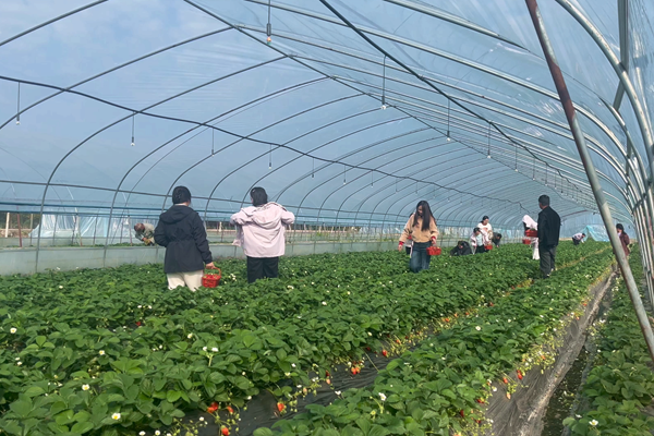 基地采摘游客何江丽欣喜地说:“周末和朋友一起来摘草莓,既能亲近大自然,又能体验采摘的快乐。这里的草莓又大又甜,特别适合亲子采摘,下次我们还会再来。”