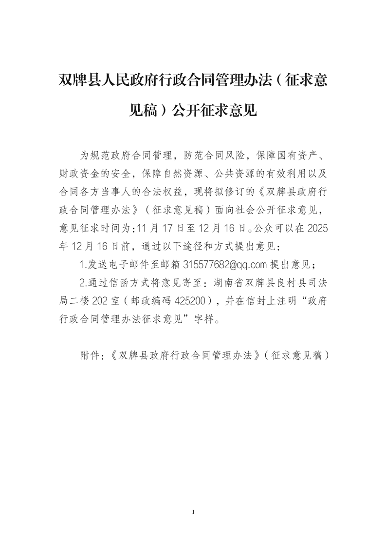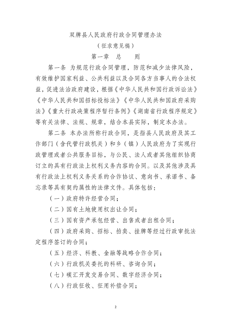 双牌县政府行政合同管理办法(征求意见稿)公开征求意见