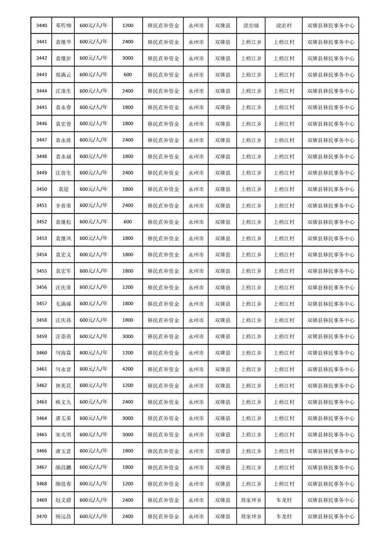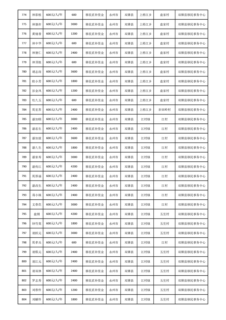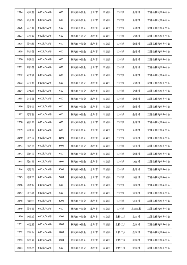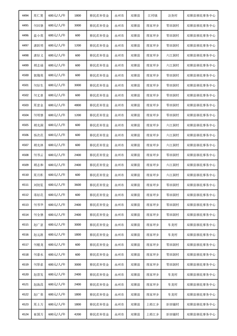 2025年双牌县库区移民后期扶持基金发放名单公示