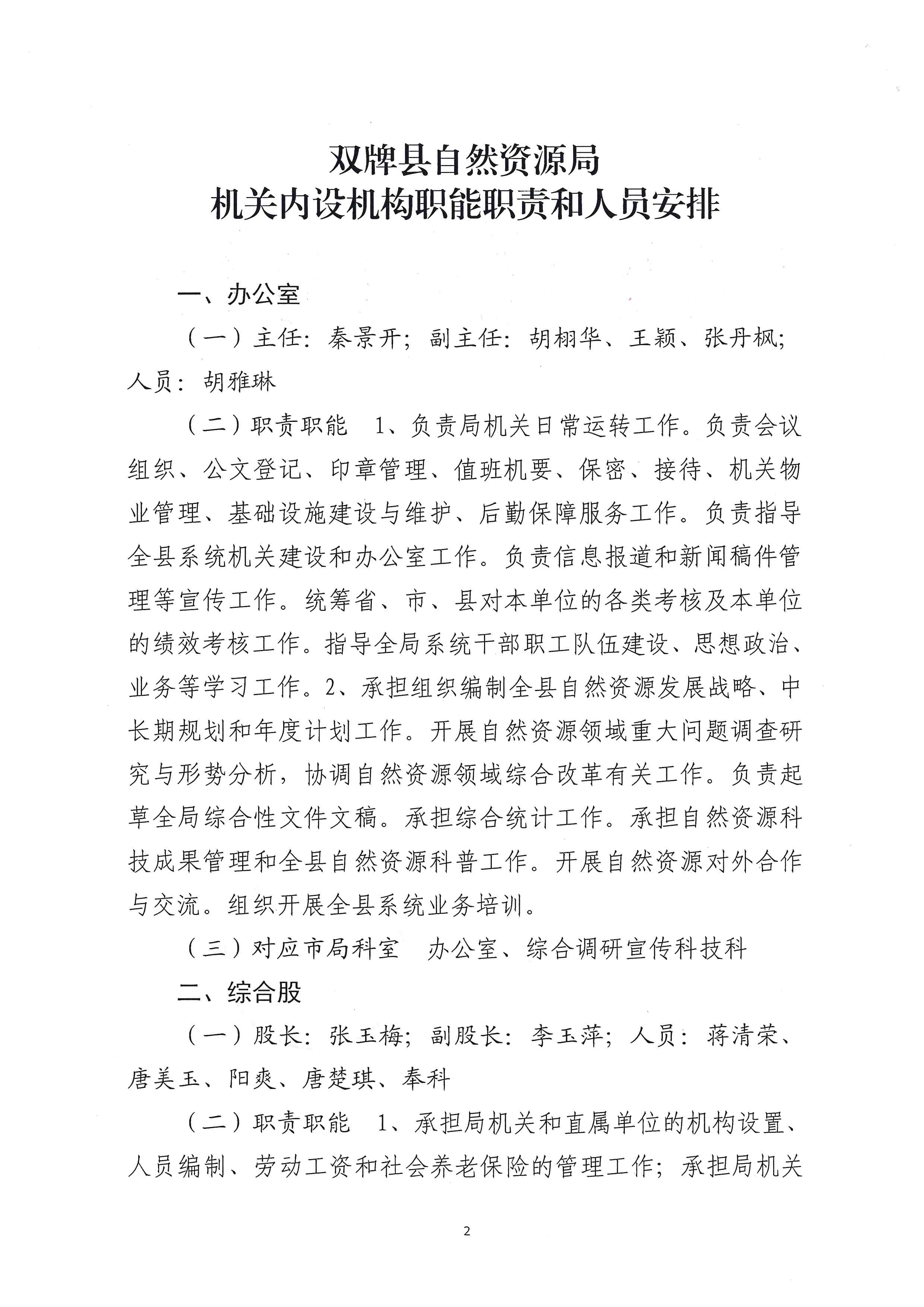 2022年双牌县自然资源局机关内设机构职能职责和人员安排