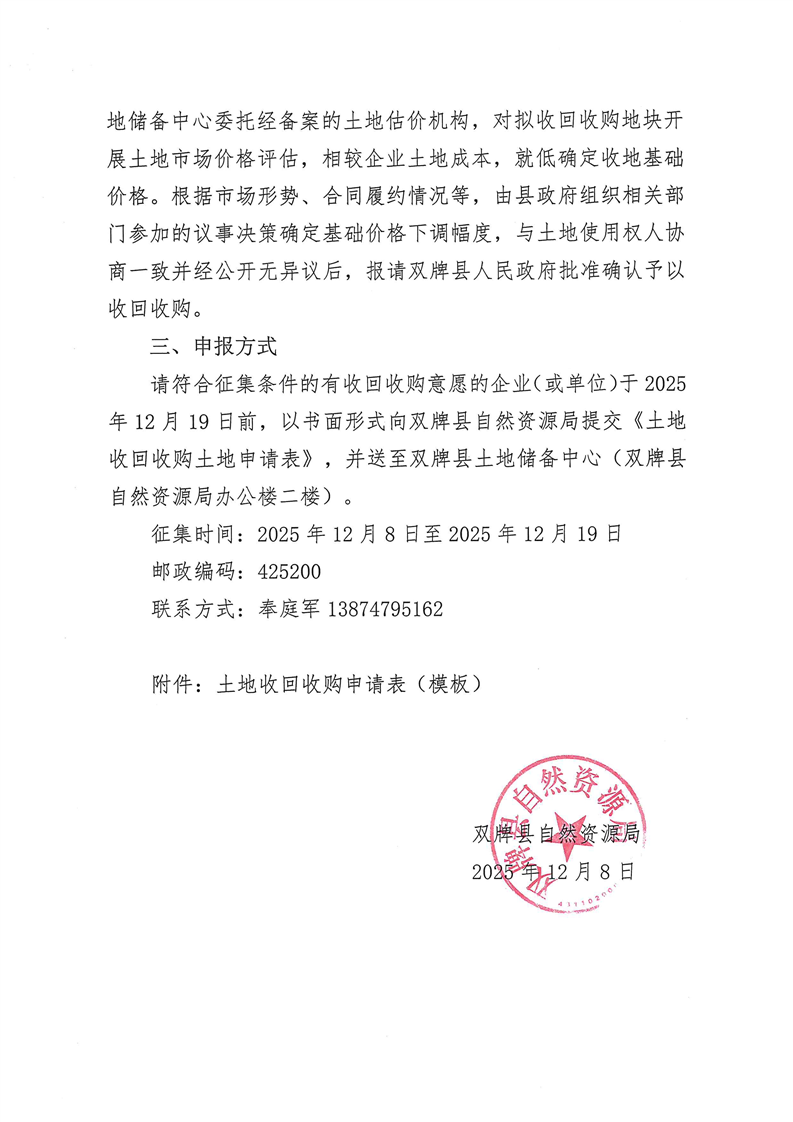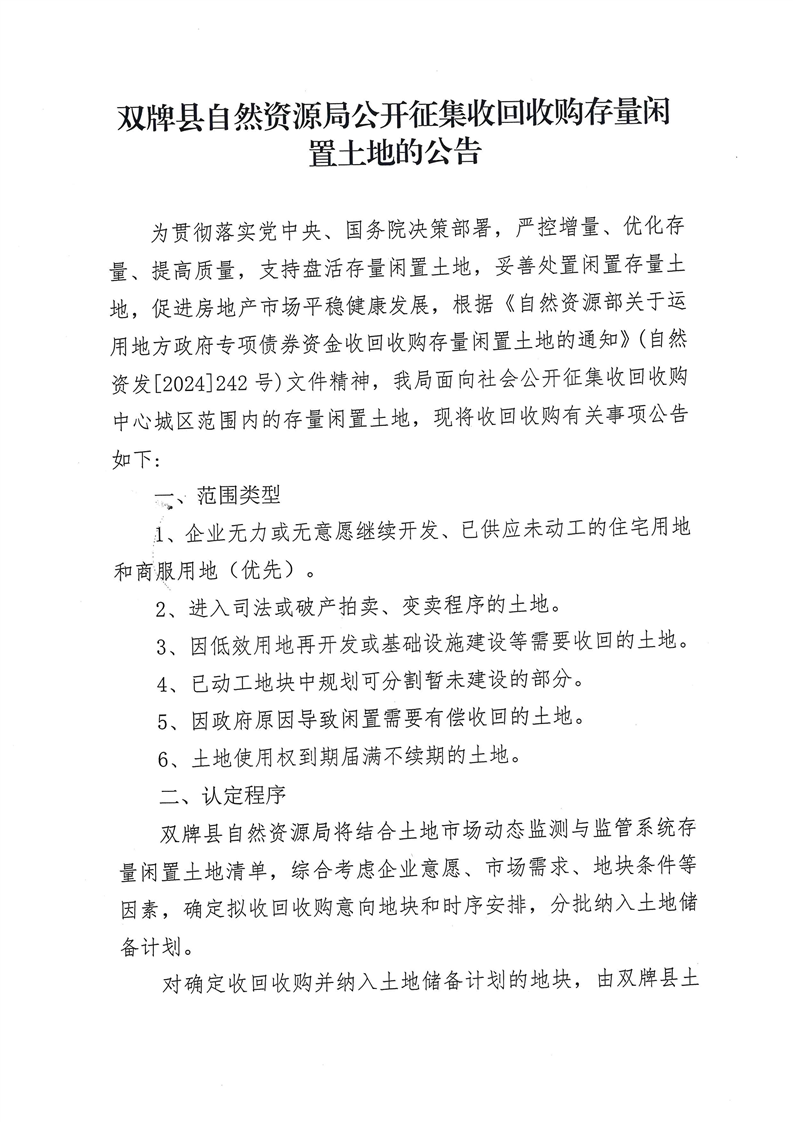 双牌县自然资源局公开征集收回收购存量闲置土地的公告